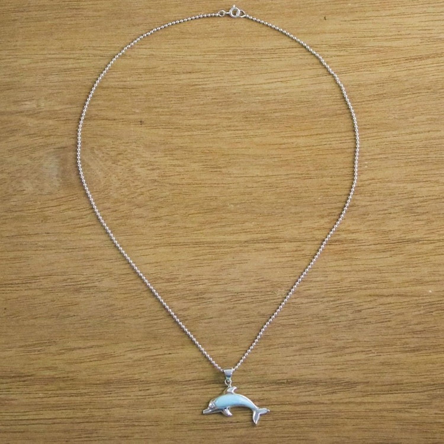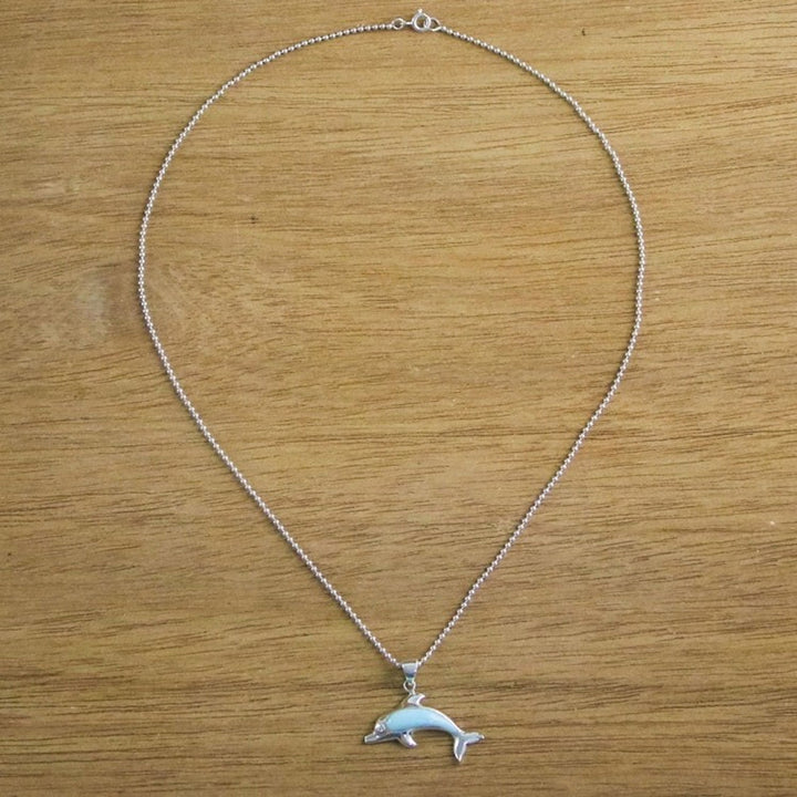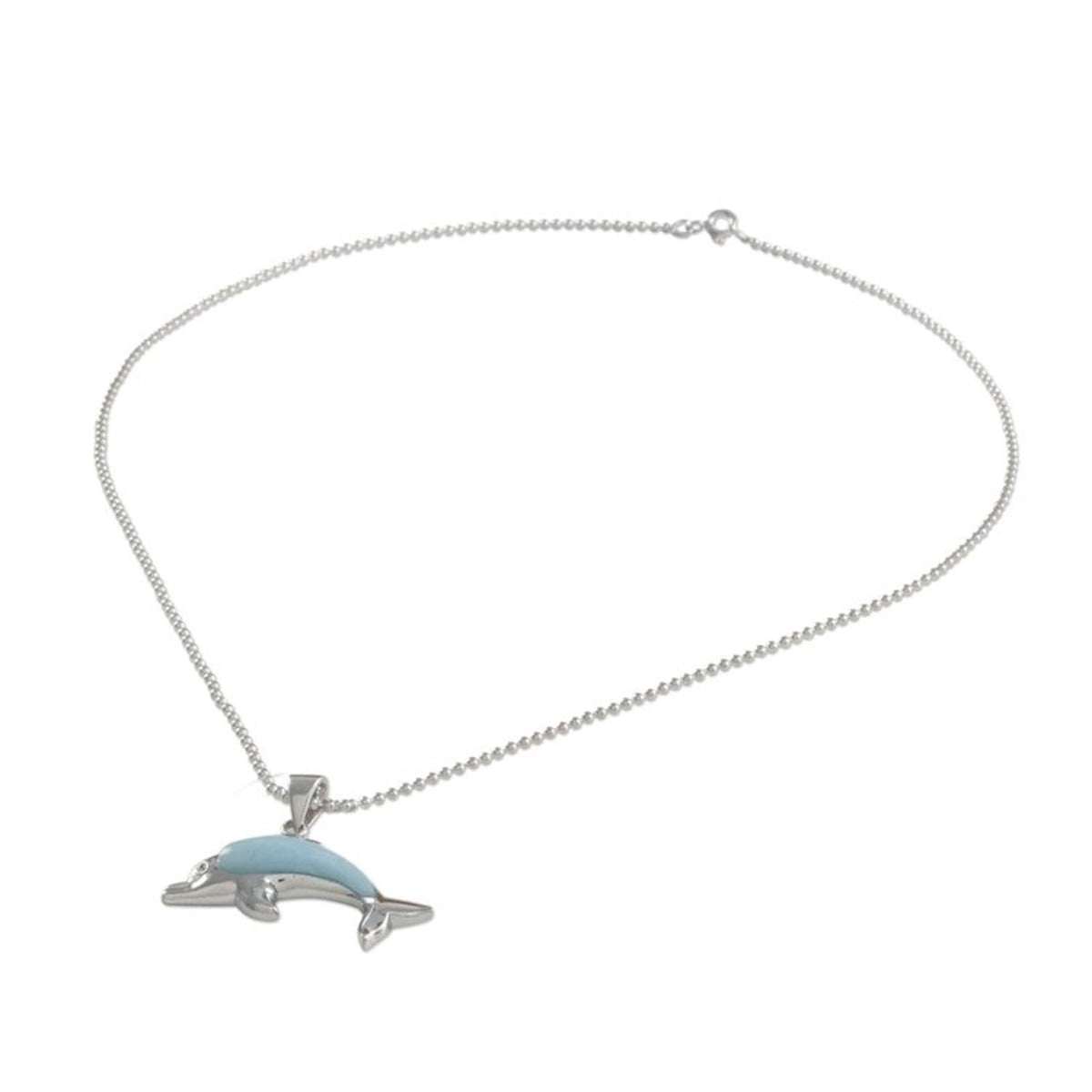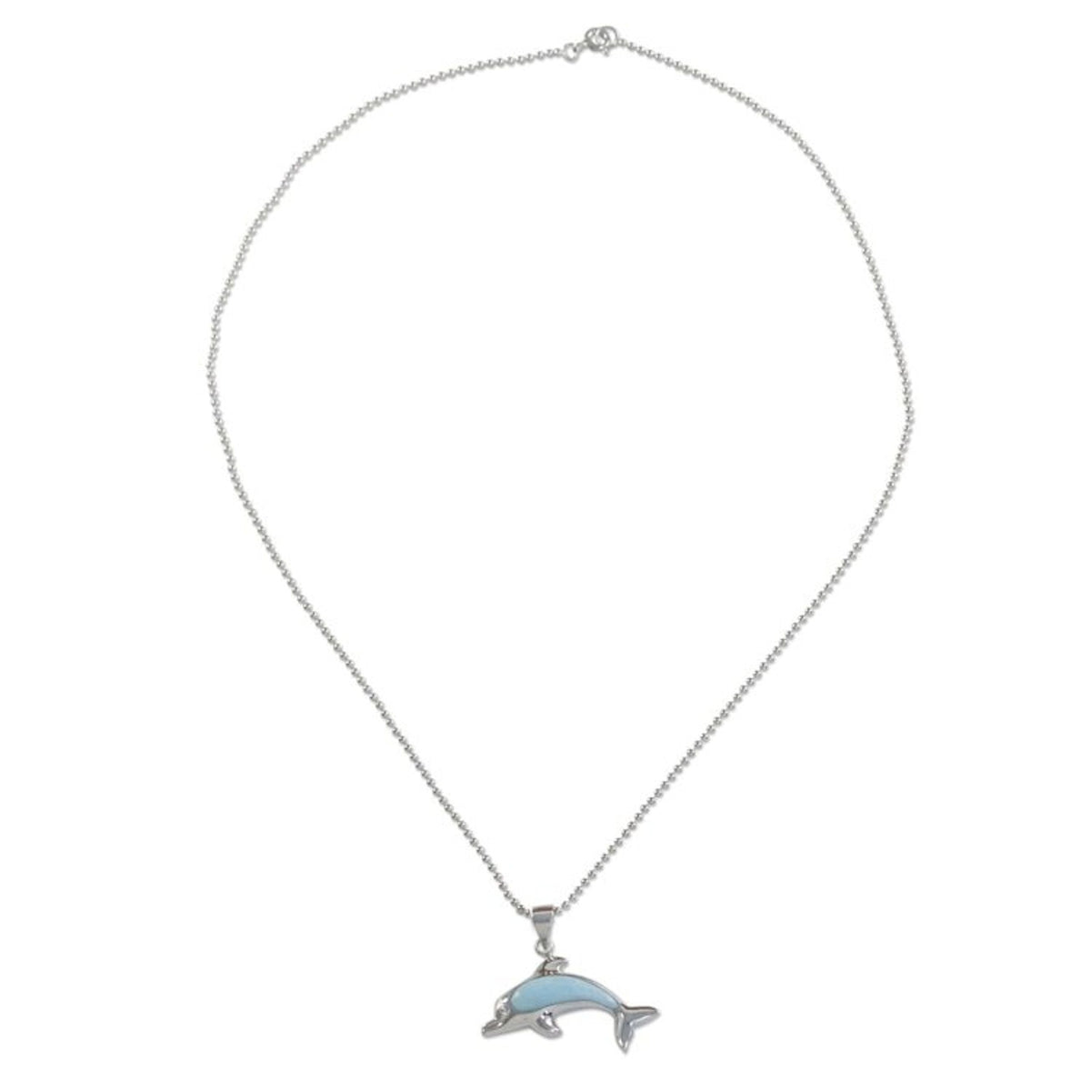 Larimar Sterling Silver Swimming Dolphin Pendant Necklace 'Sleek Swimmer'