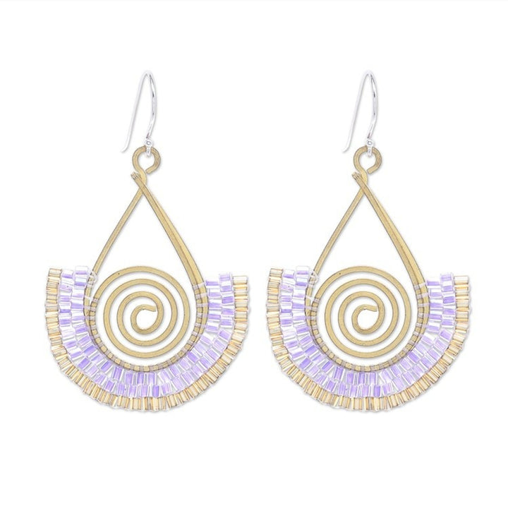Lavender and Gold Glass Bead Spiral Dangle Earrings 'Spiral Fan in Lavender'