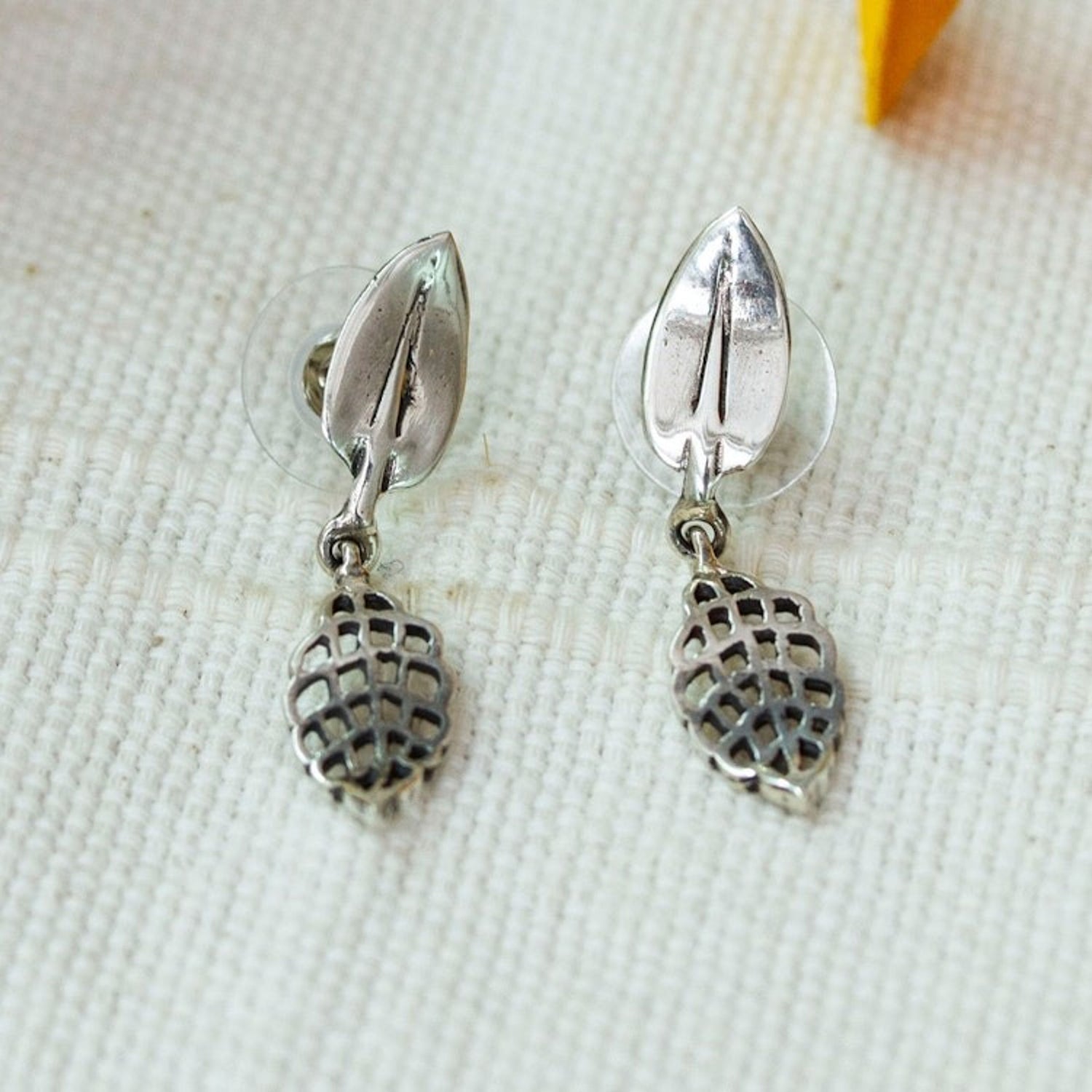 These Leafy-Shaped High-Polished Sterling Silver Dangle Earrings 'Leafy Days' are a lustrous and sylvan accessory. Designed by Martha Vargas, these dangle earrings boast tiny leaf-shaped pendants crafted in a lustrous high-polished sterling silver finish. The pieces, which reflect both cultural preservation and creative innovation, are a beautiful representation of the artisan's resilience and purpose.