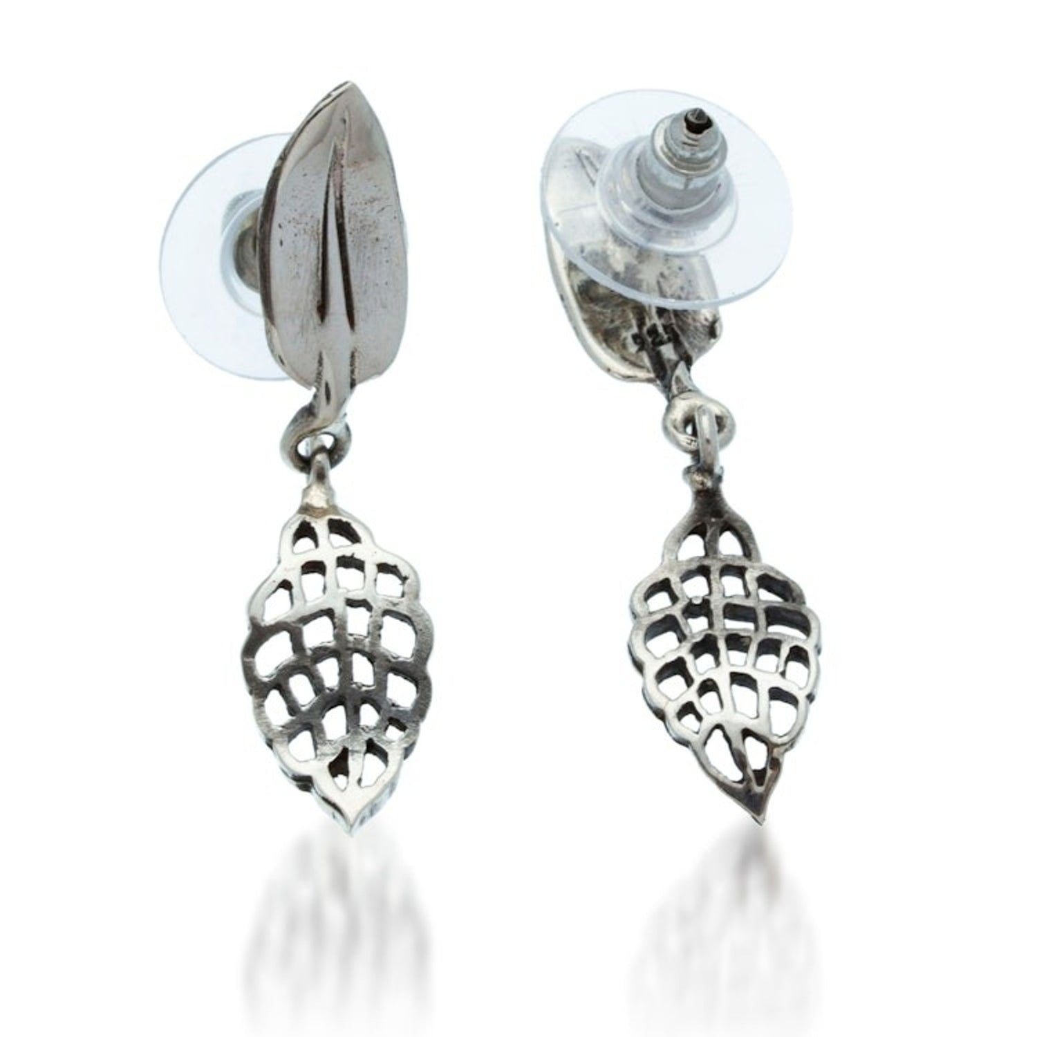 Leafy-Shaped High-Polished Sterling Silver Dangle Earrings 'Leafy Days'