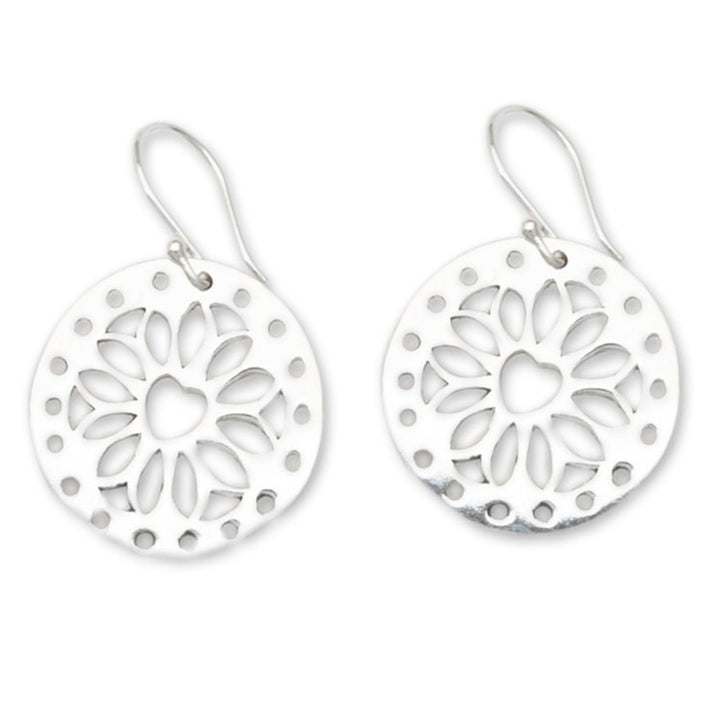Lotus and Heart-Themed Round Sterling Silver Dangle Earrings 'Lotus Whisper'