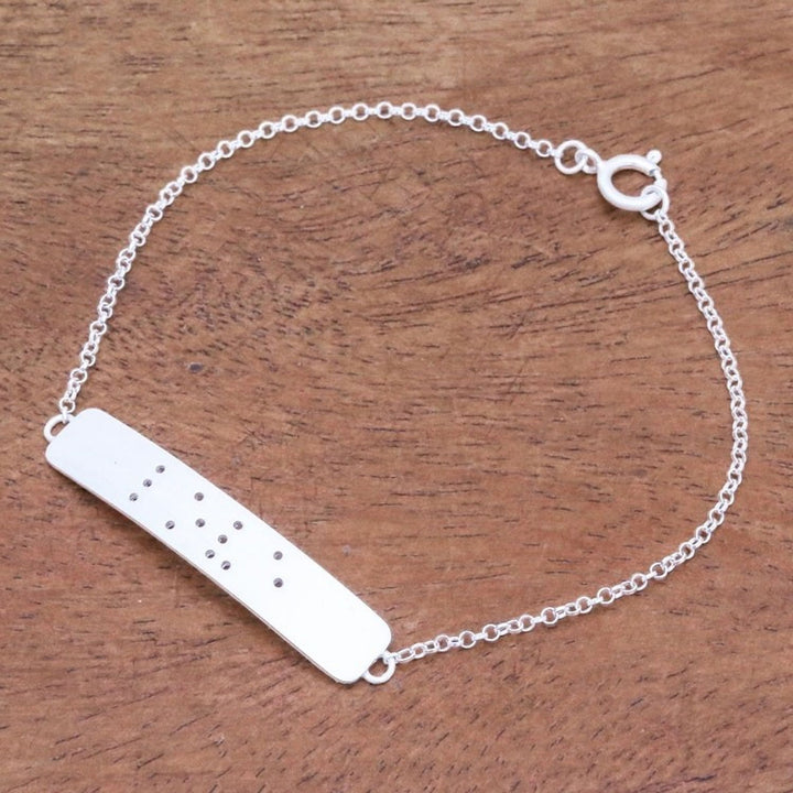 Love-Themed Braille Cutout Sterling Silver Pendant Bracelet 'Love Dots'