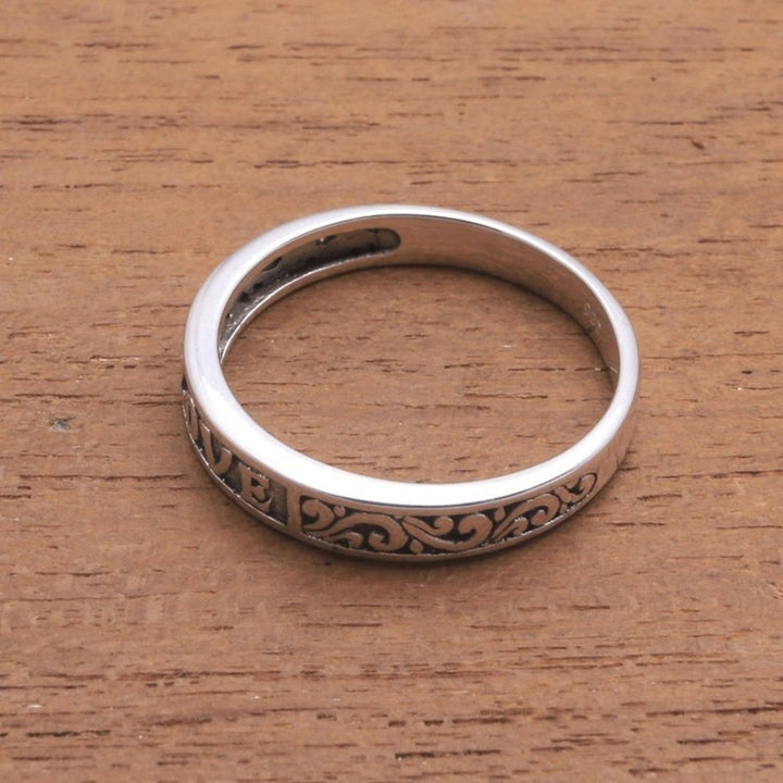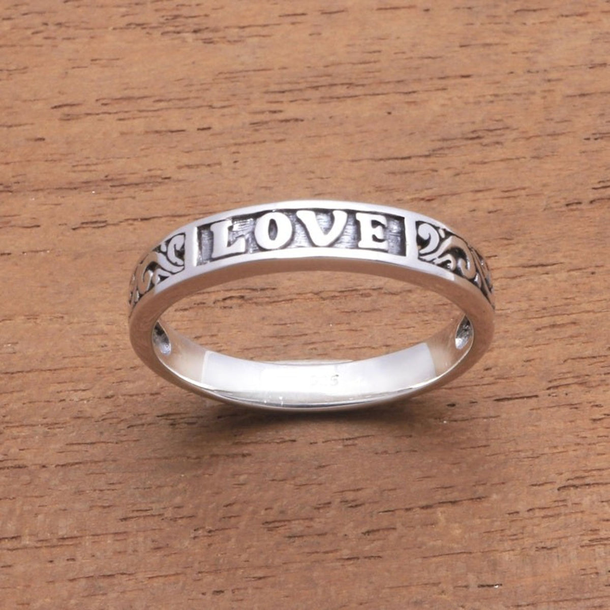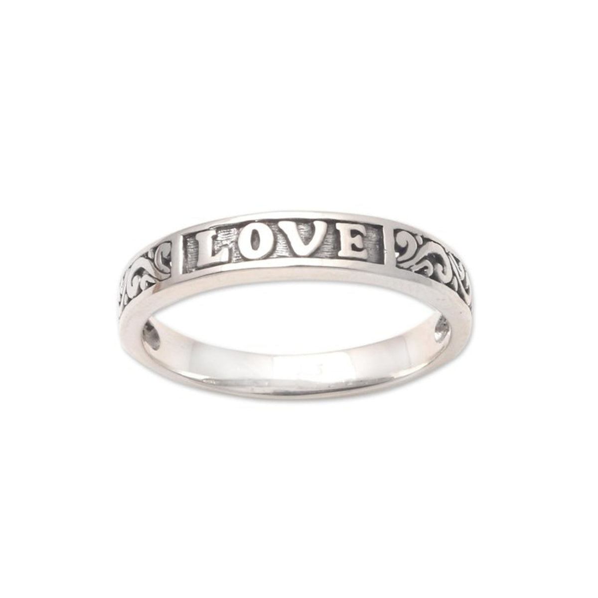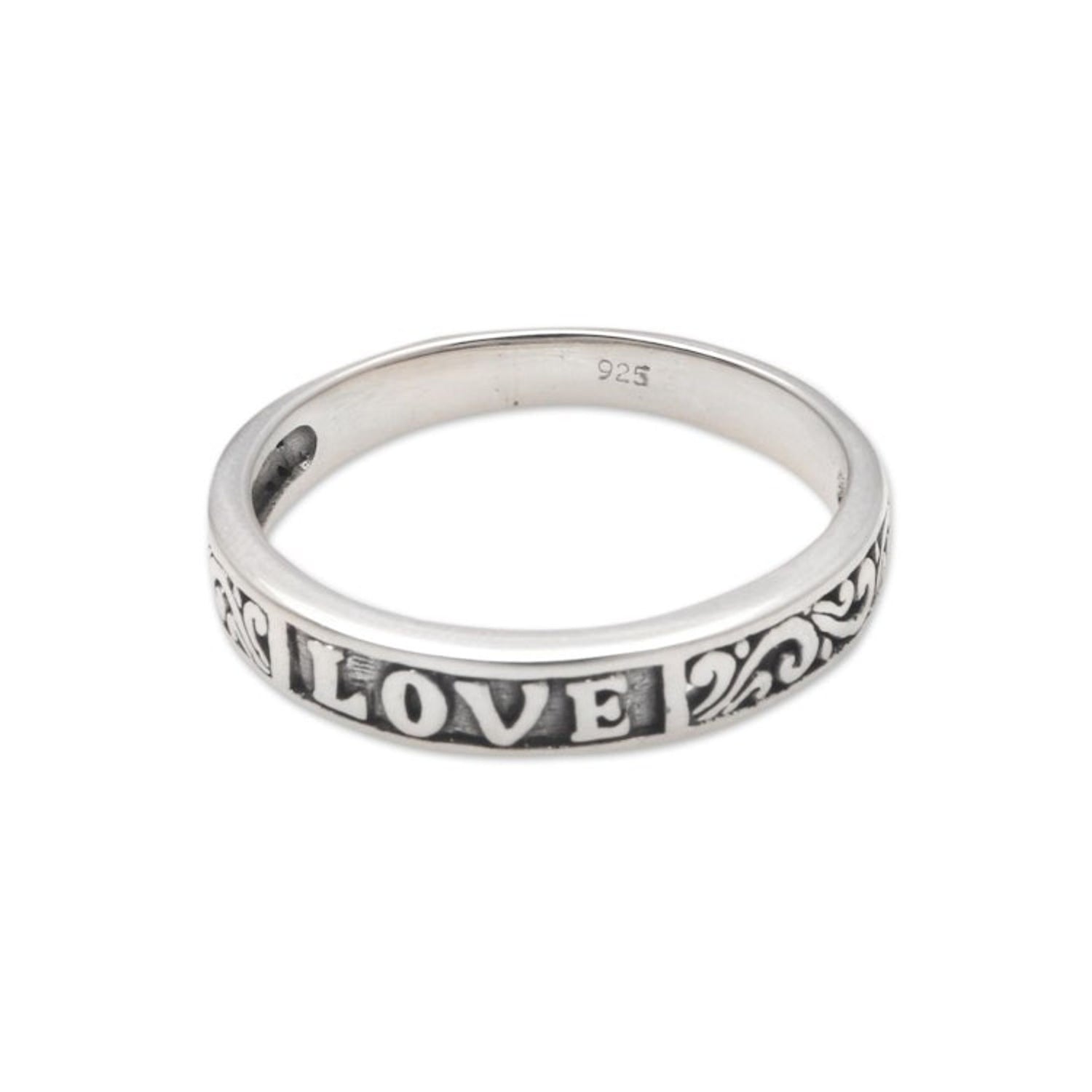 Love-Themed Sterling Silver Band Ring from Bali 'Love Swirls'
