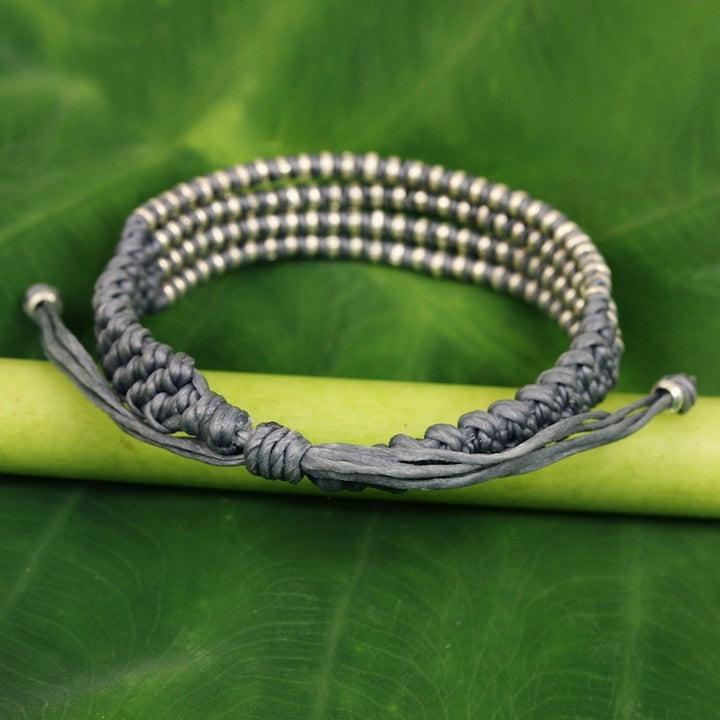 Macrame Bracelet with Silver in Misty Light Grey 'Misty Chiang Mai Quartet'
