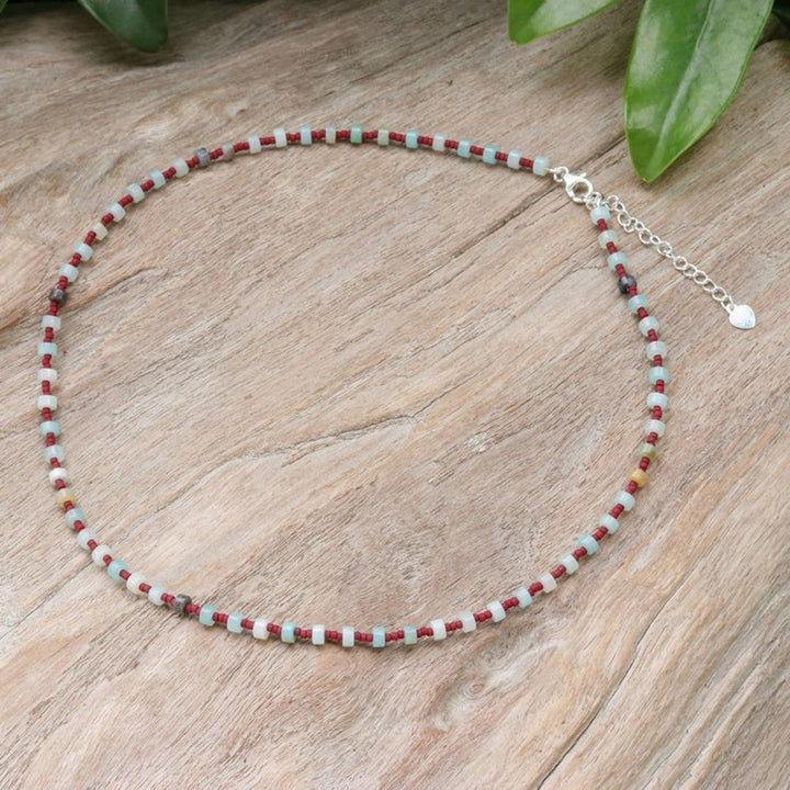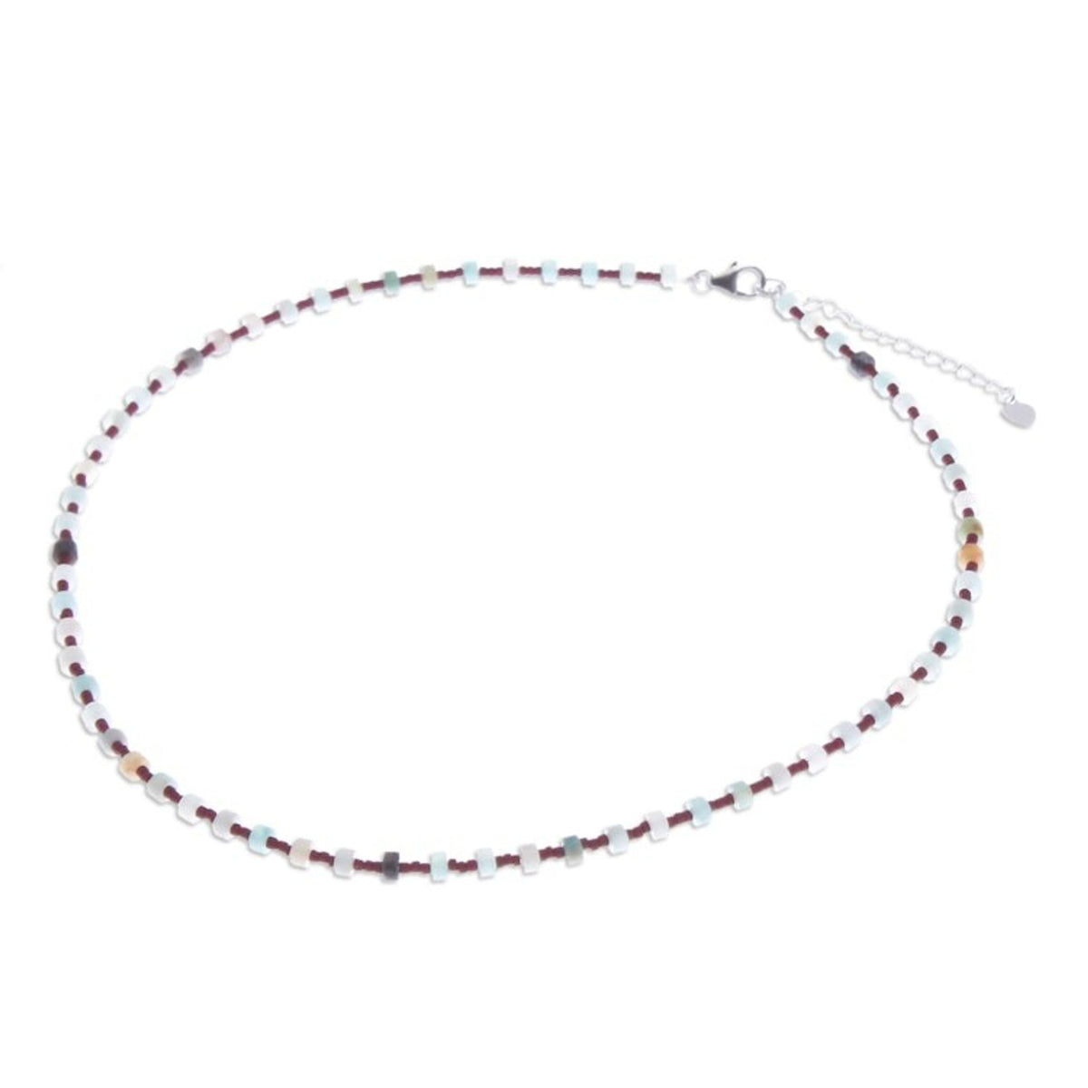 Handcrafted in Thailand with quartz, glass beads, and a .925 sterling silver clasp. The necklace is 18 inches long with a 2-inch extender. It has a high-polish finish. As a handcrafted item, color and size may vary slightly.