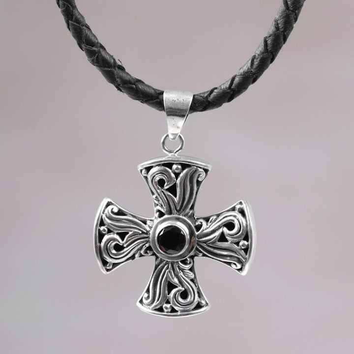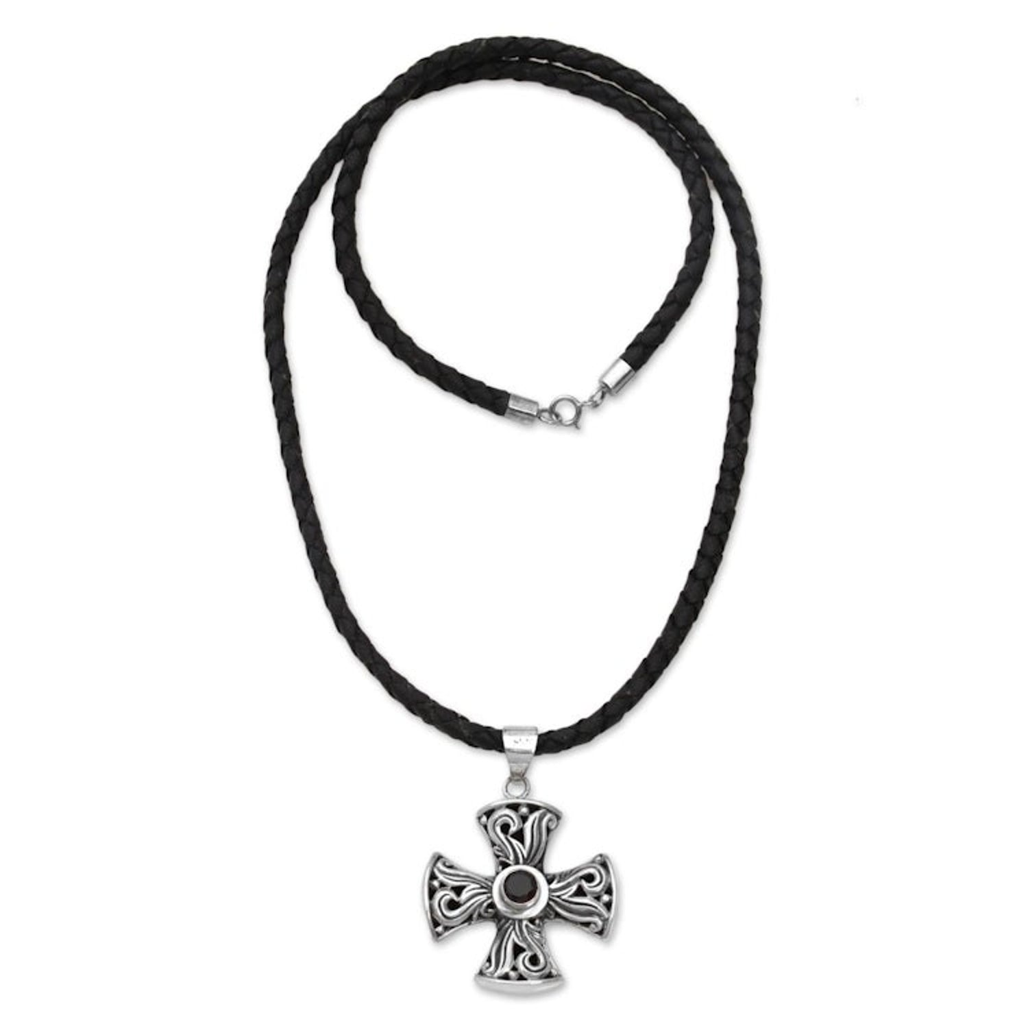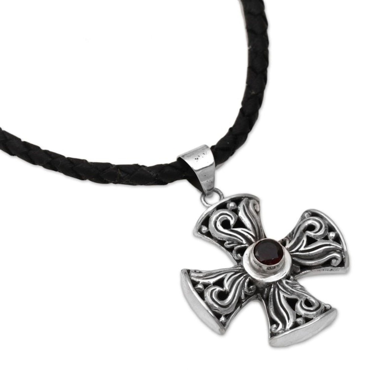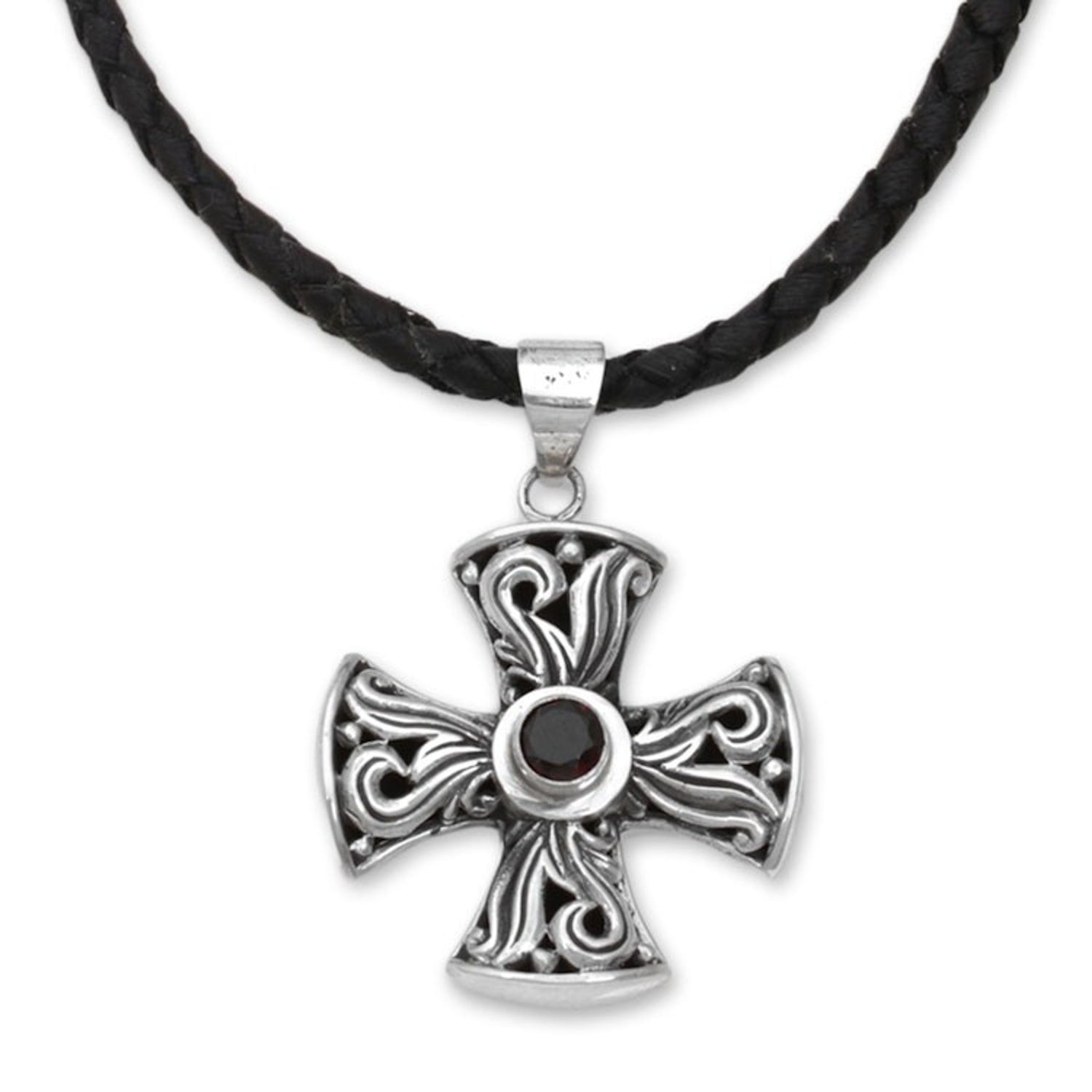 This Men's Sterling Silver and Garnet Cross Necklace 'Fire of Faith' is a magnificent and elegant accessory. Designed by Kenari, this cross necklace is handcrafted with an ornate axis of sterling silver, centered by a fiery garnet. The piece, which balances tradition with innovation, is a beautiful representation of the artisan's commitment to ensuring Balinese silver artistry continues to flourish for future generations.