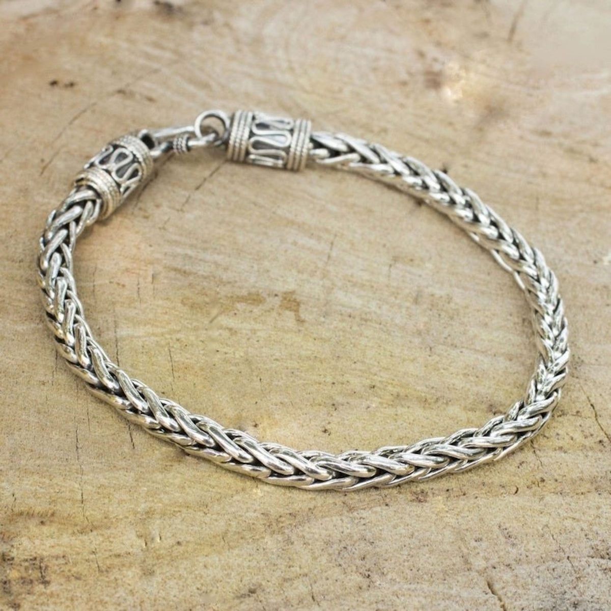 Men's Sterling Silver Chain Bracelet from Thailand 'Strength'