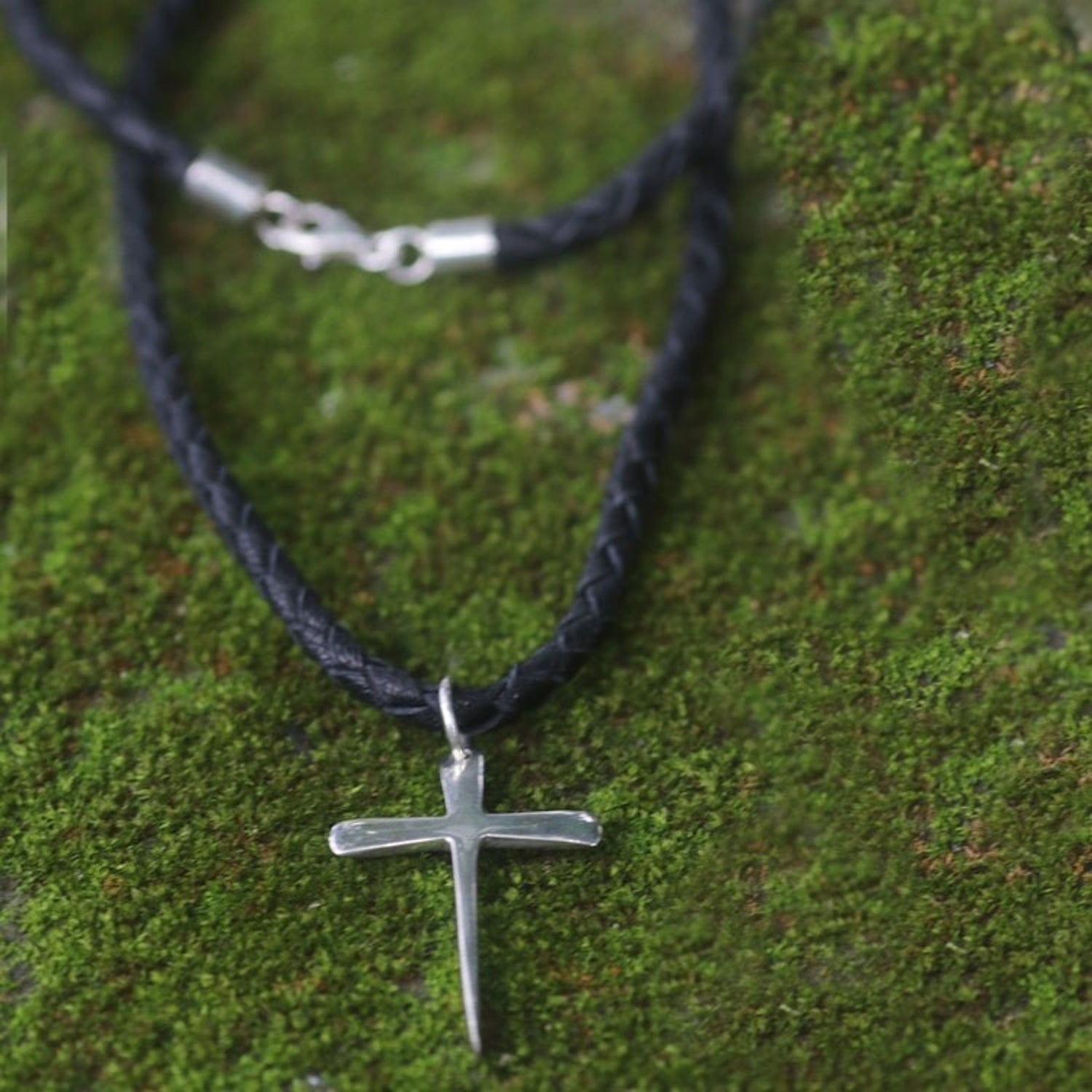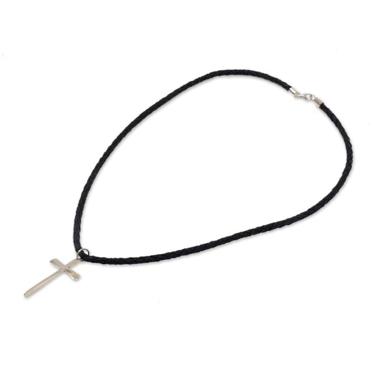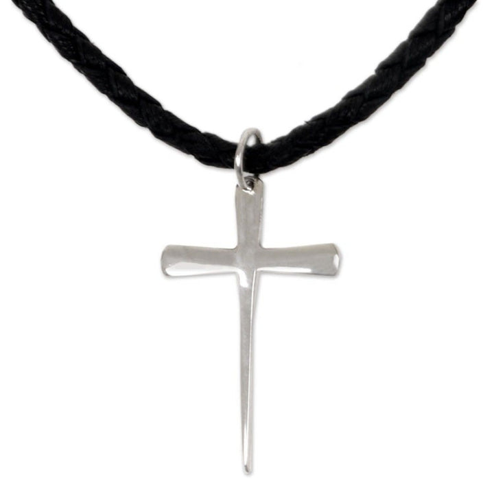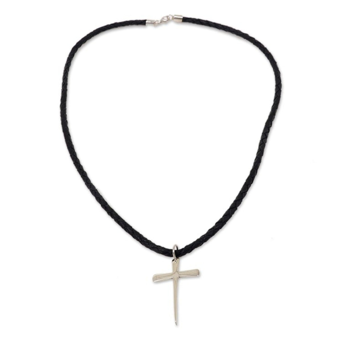 This Men's Sterling Silver Cross Necklace 'Holy Sacrifice' is a splendid and classic accessory. Designed by Nyoman Rena, this necklace features a stylized cross pendant crafted from sterling silver, on a braided leather cord. The piece, which captures both Balinese heritage and contemporary design, is a beautiful representation of the artisan's commitment to sharing Bali's artistry with the world.