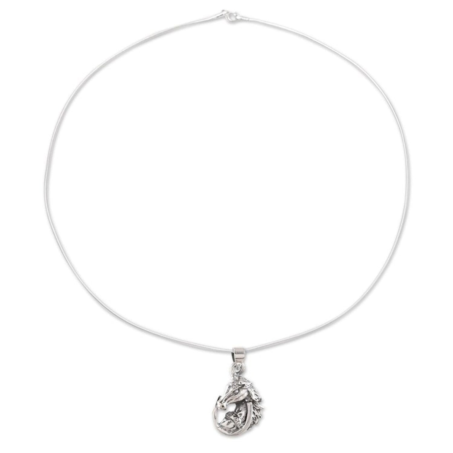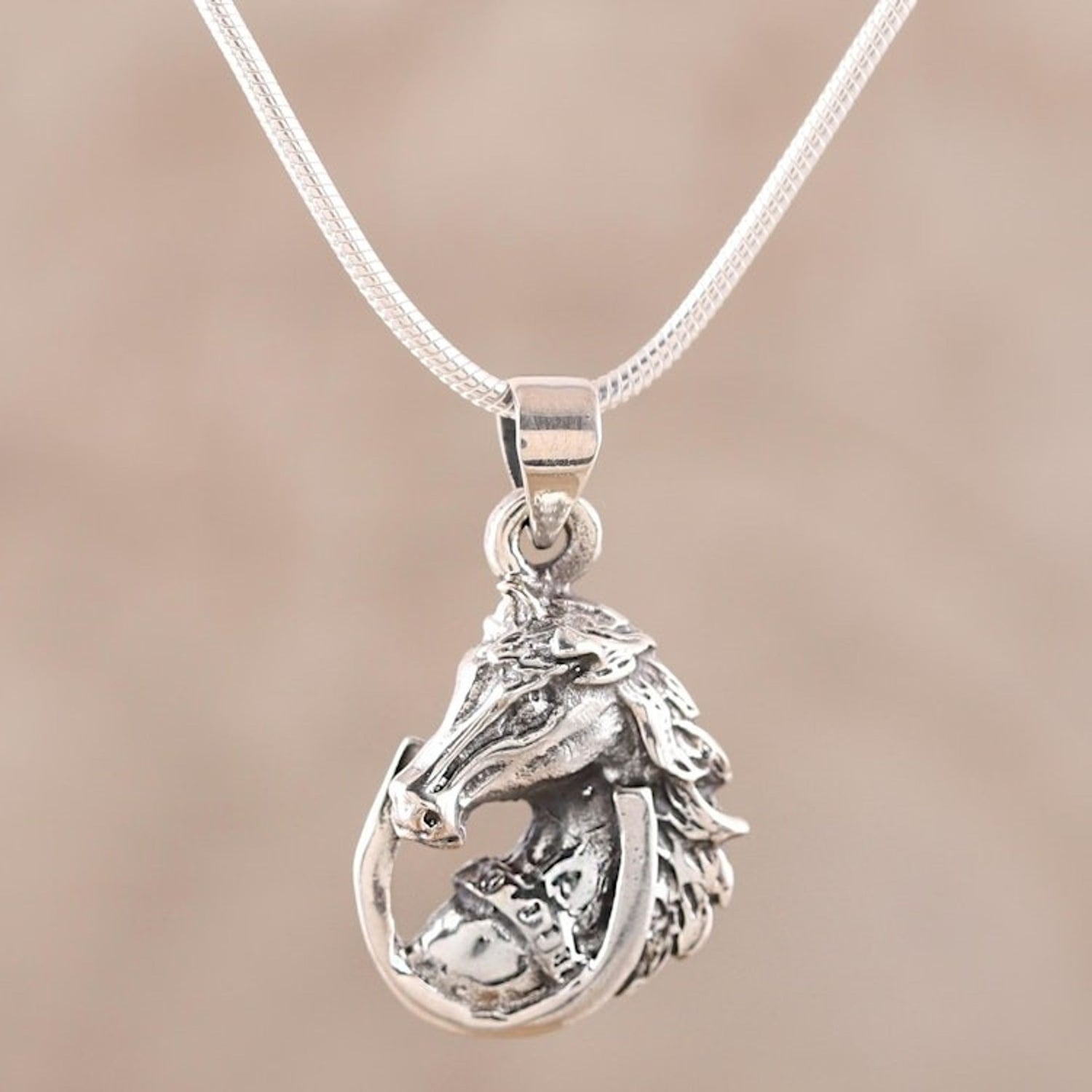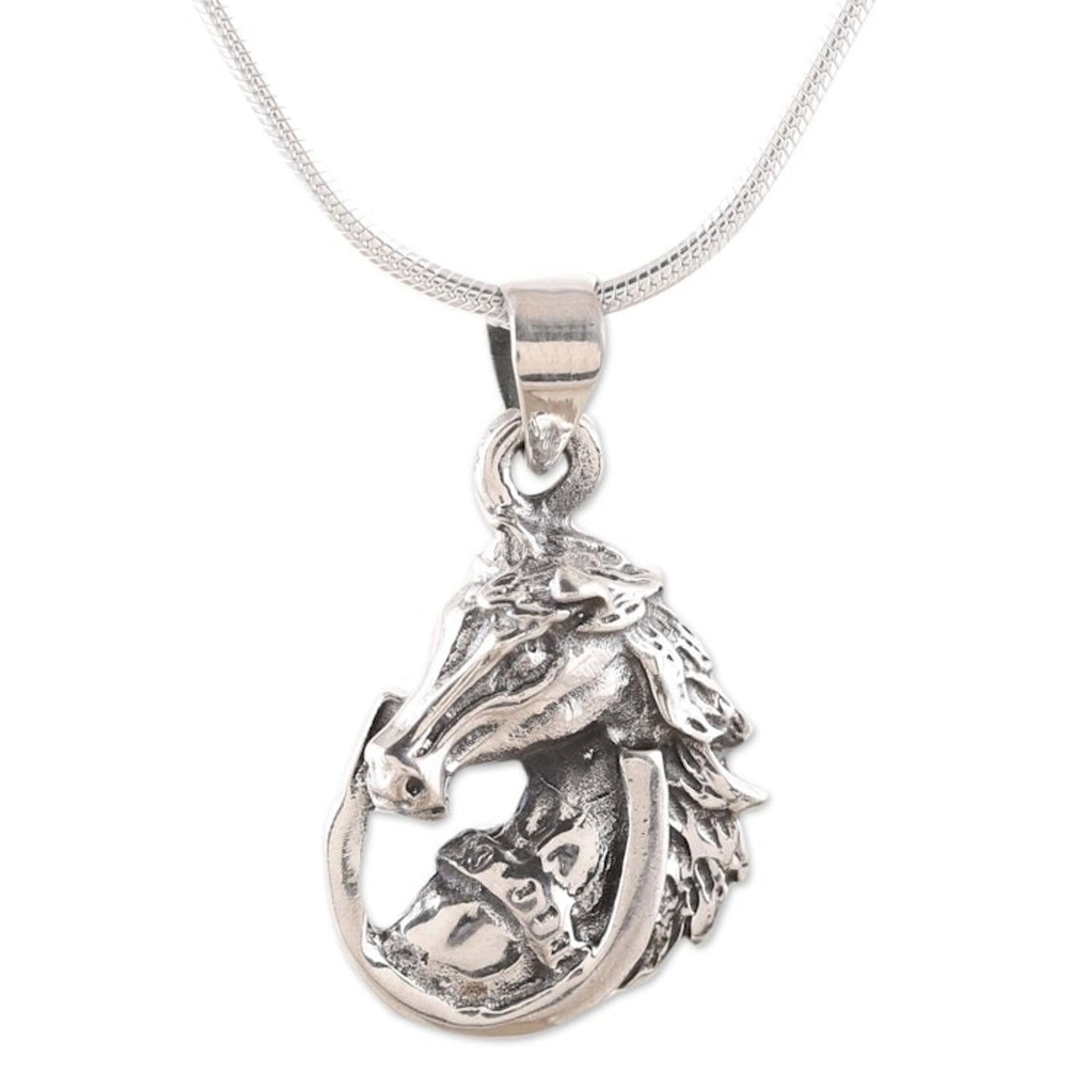 Men's Sterling Silver Horse Pendant Necklace from India 'Lucky Horse'