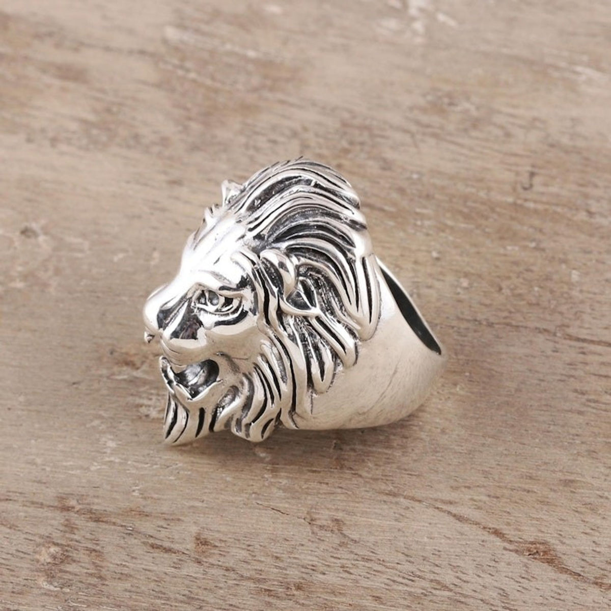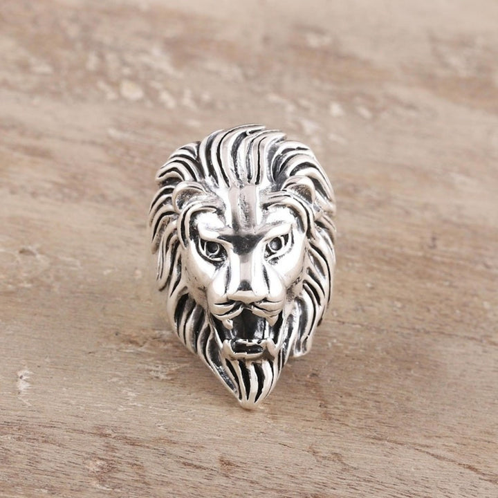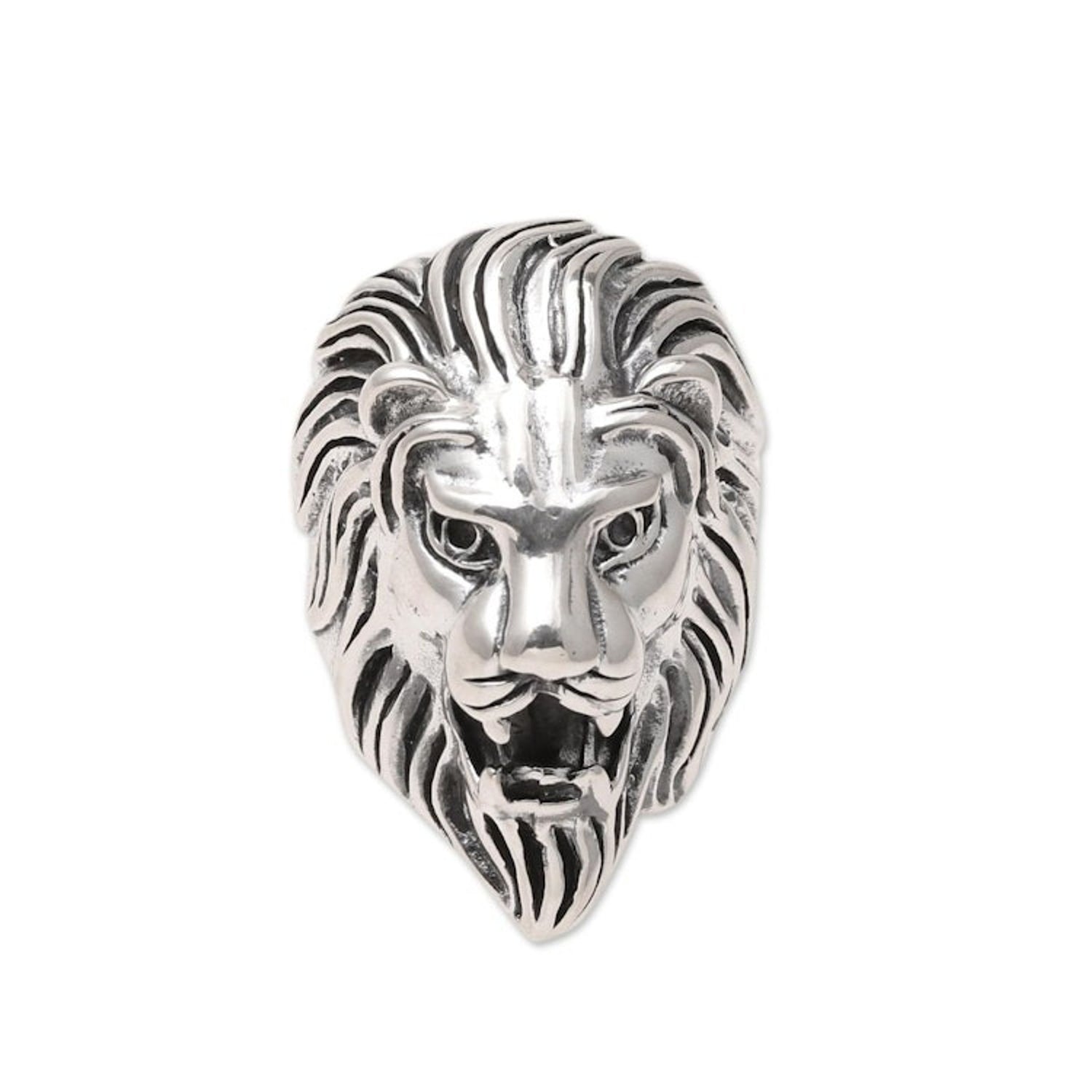 Men's Sterling Silver Lion Ring Crafted in India 'Kingly Lion'