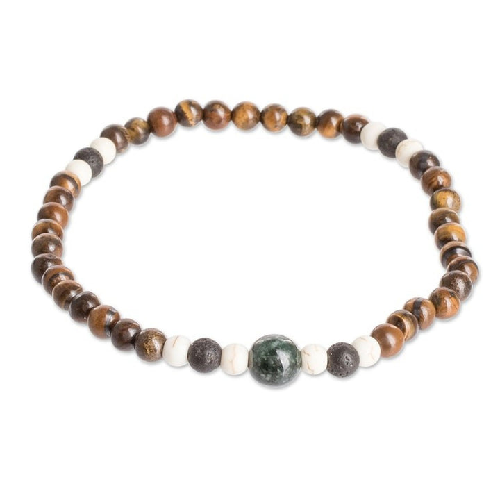 Men's Tiger's Eye Jade Lava Stone Beaded Stretch Bracelet 'Wild Jungle'