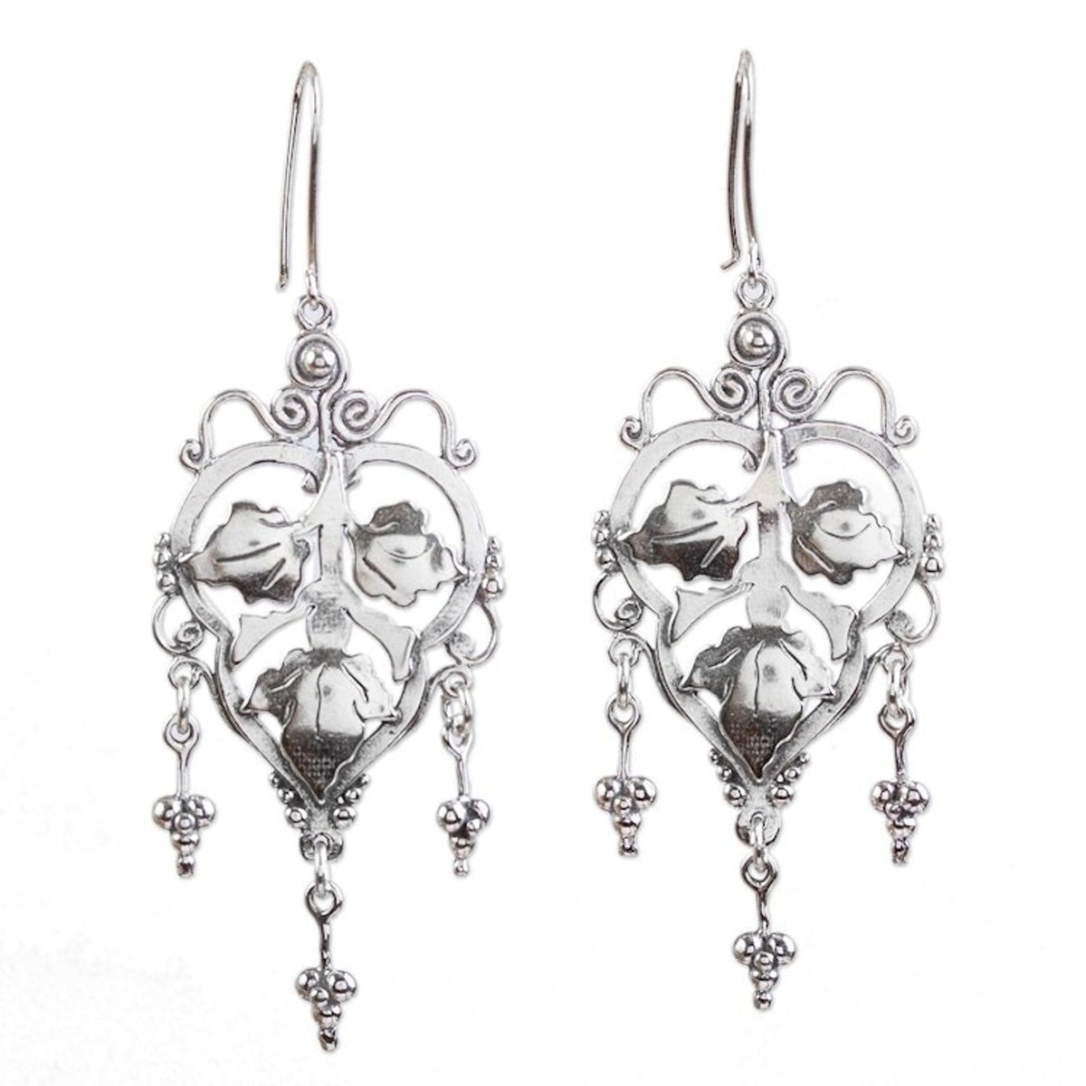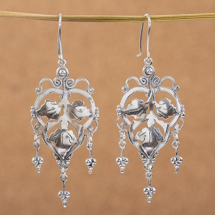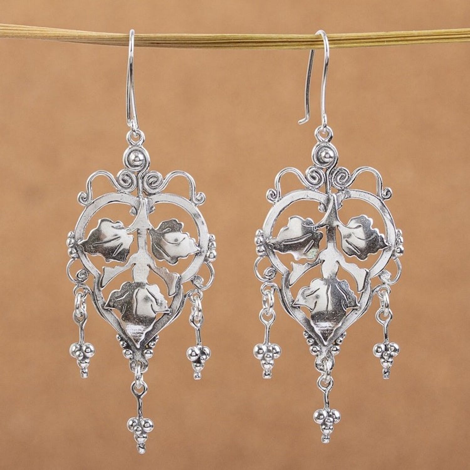This Mexican Handcrafted Sterling Silver Chandelier Earrings 'Three Leaves' is an elegant and original accessory. Designed by Gianluca Anzani, these chandelier earrings feature three leaves framed in spiral tendrils with tiny baubles, crafted from lustrous sterling silver. The piece, which embodies cross-cultural heritage, is a beautiful representation of the artisan's commitment to sharing his life story through his jewelry.