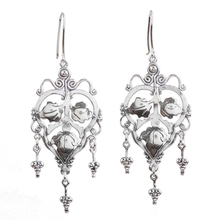 Mexican Handcrafted Sterling Silver Chandelier Earrings 'Three Leaves'