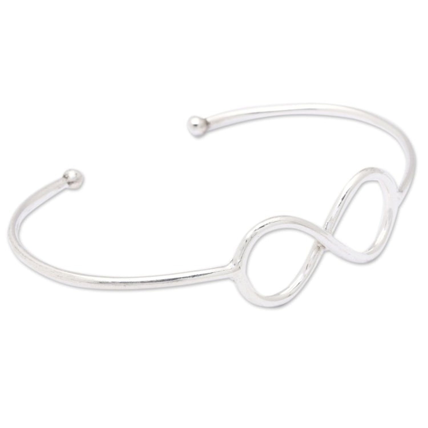 Minimalist Infinity Symbol Sterling Silver Cuff Bracelet 'Infinite Globe-Trotting'