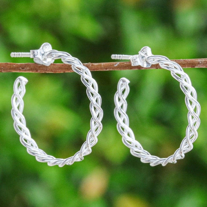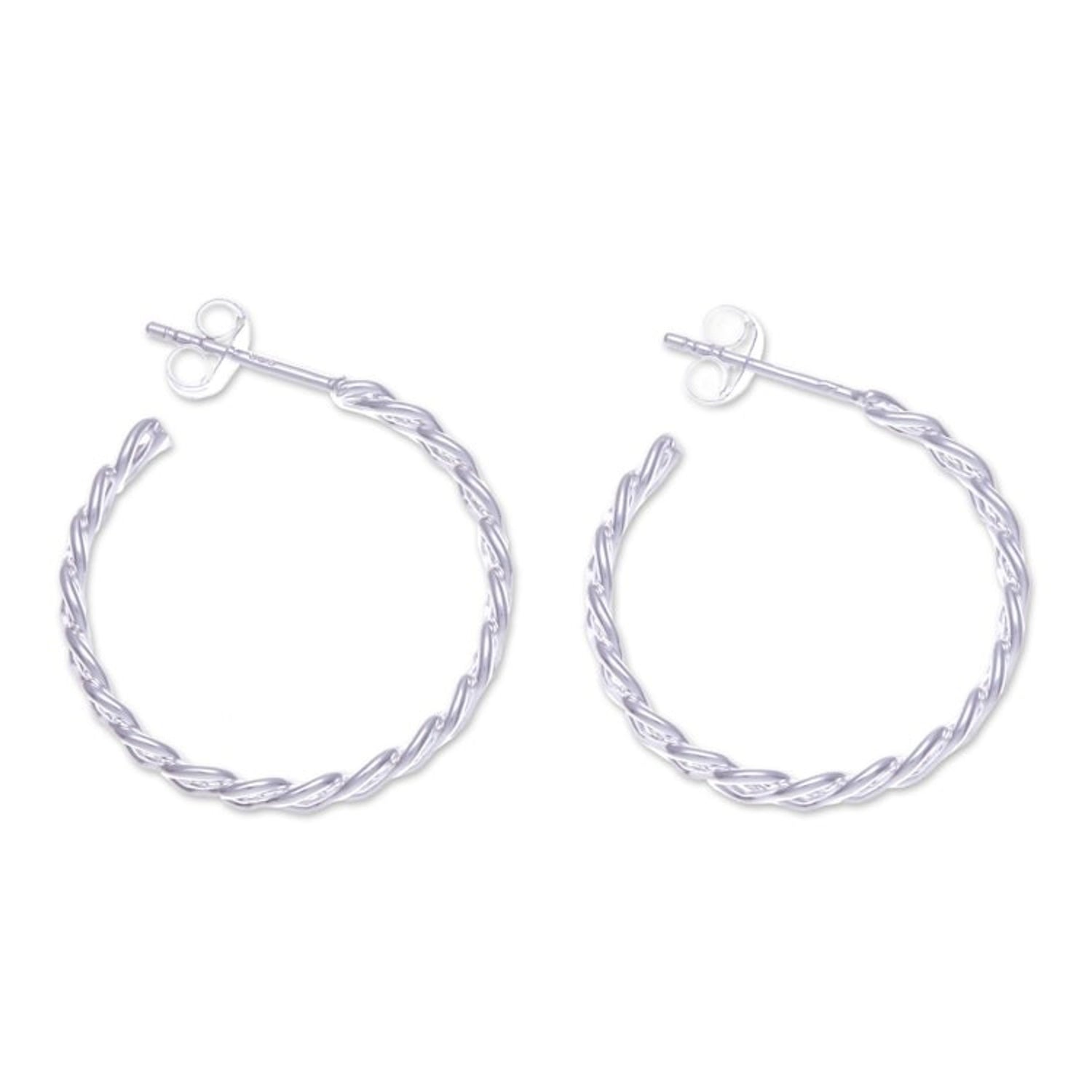 Minimalist-Inspired Sterling Silver Rope Half-Hoop Earrings 'Utopian Ropes'