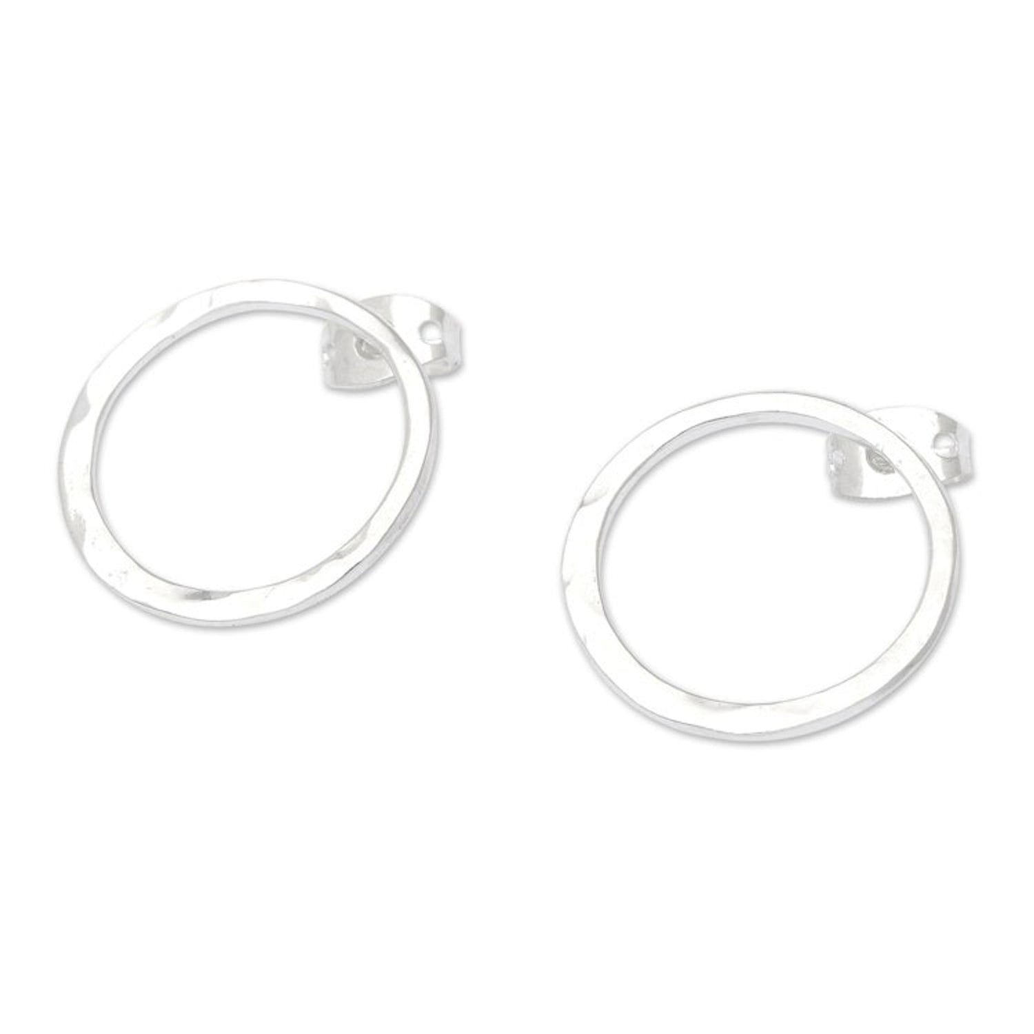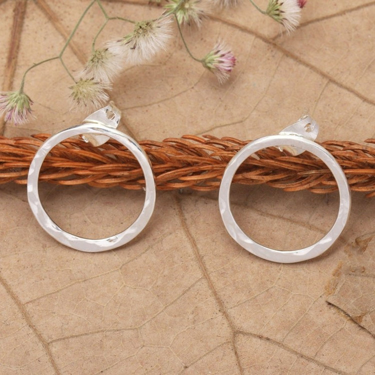 This Minimalist Round Sterling Silver Drop Earrings from Bali 'Minimalist Eternity' is a minimalist and dazzling accessory. Designed by Griya Suarningsih, these sterling silver drop earrings feature a modern round shape with a combination of polished and hammered finishes. The piece, which celebrates artistry and resilience, is a beautiful representation of the artisan's commitment to preserving the spirit of traditional Balinese silversmithing.
