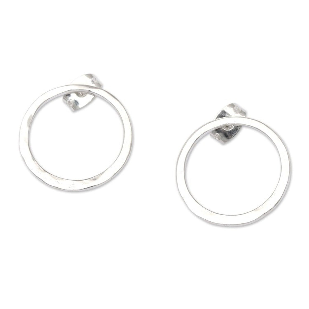 Minimalist Round Sterling Silver Drop Earrings from Bali 'Minimalist Eternity'