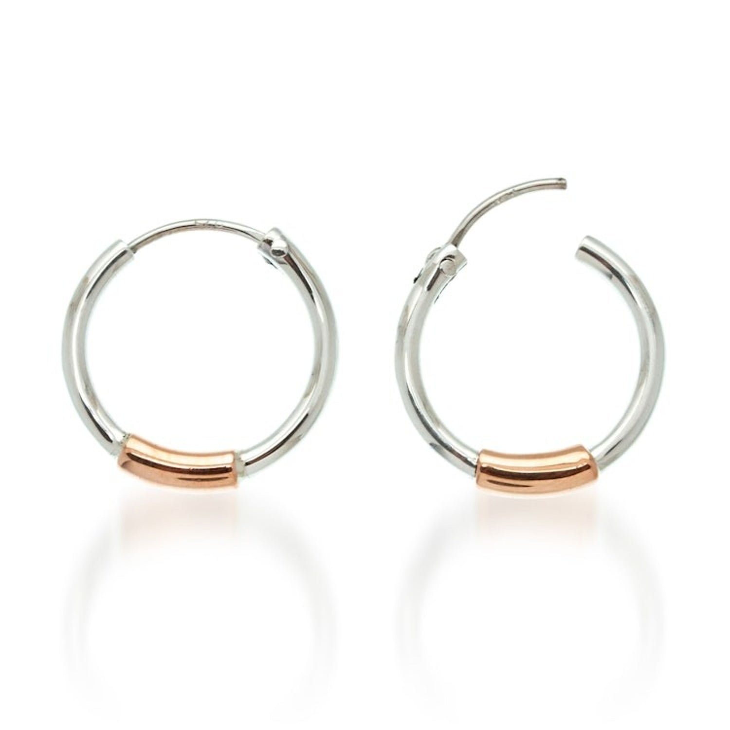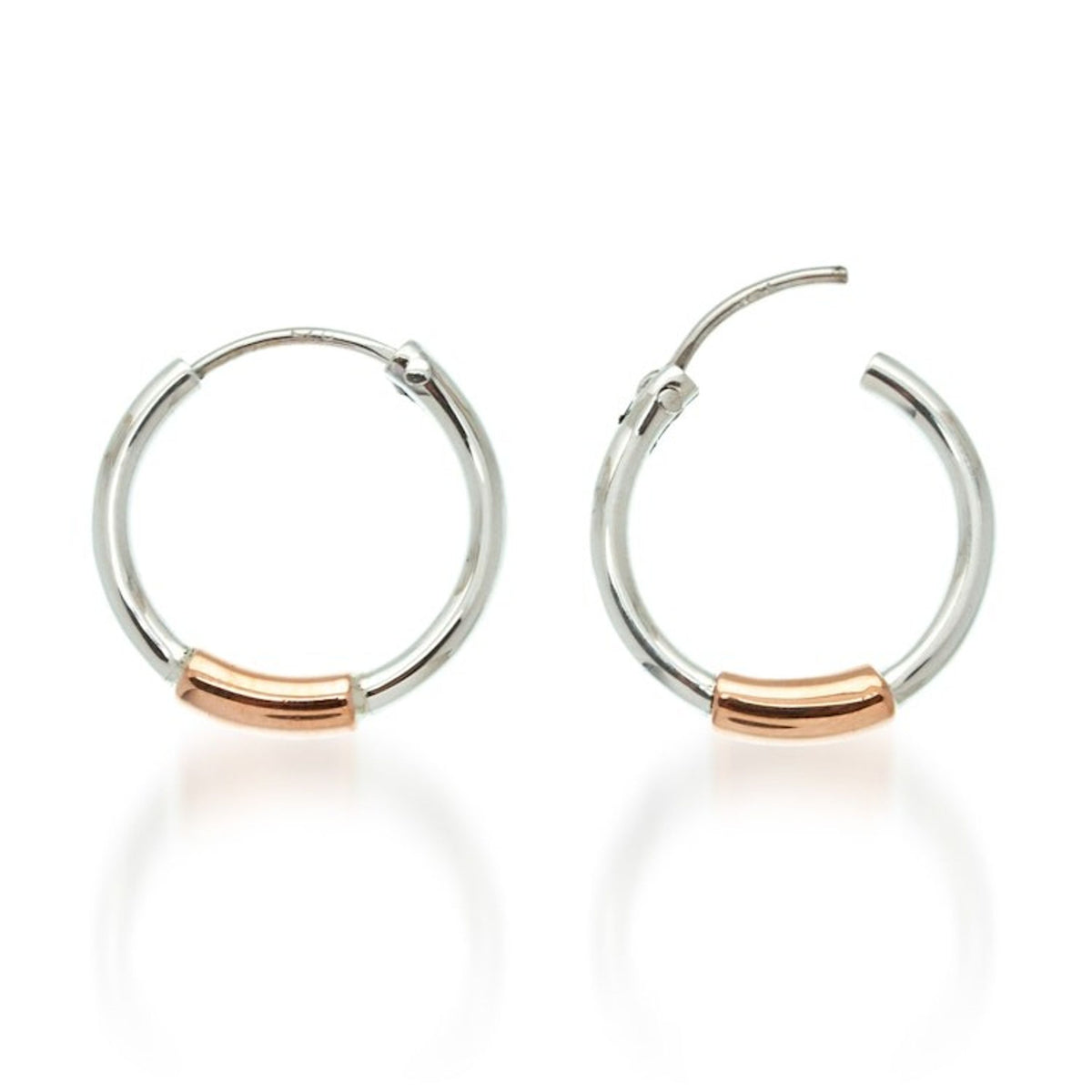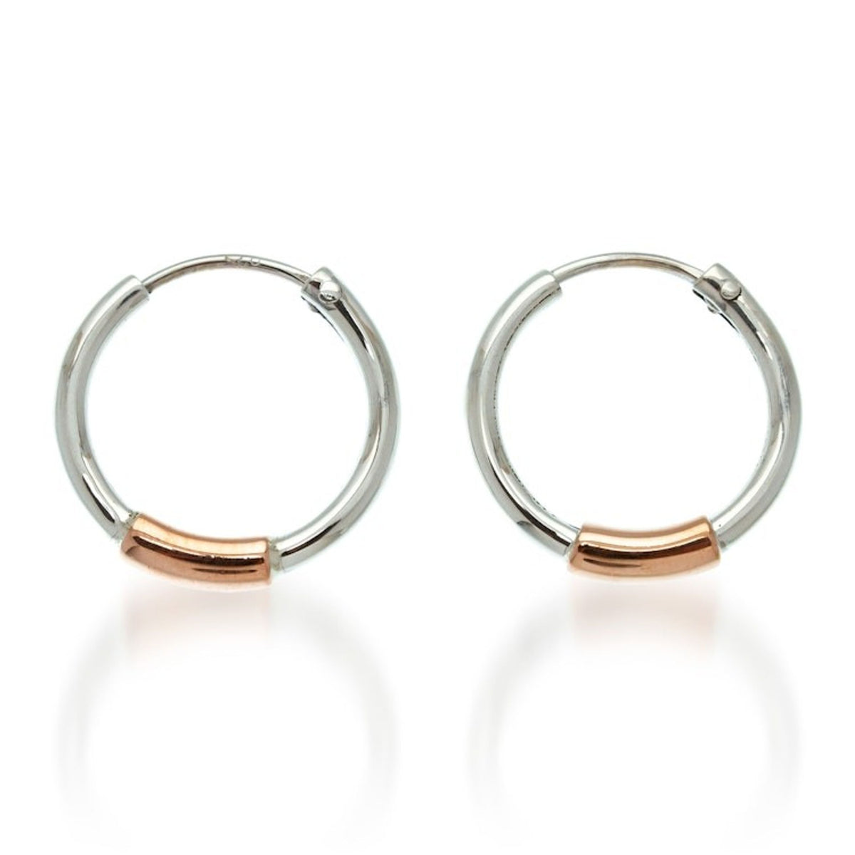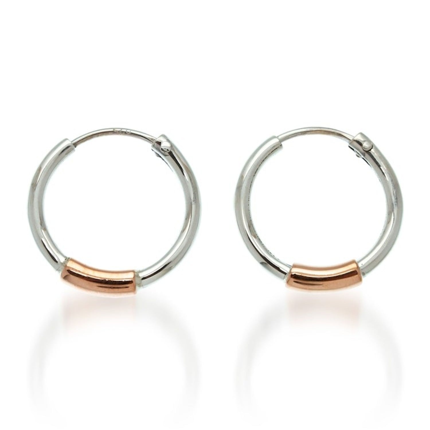 Minimalist Taxco Silver Hoop Earrings with Copper Accents 'Metallic Allure'