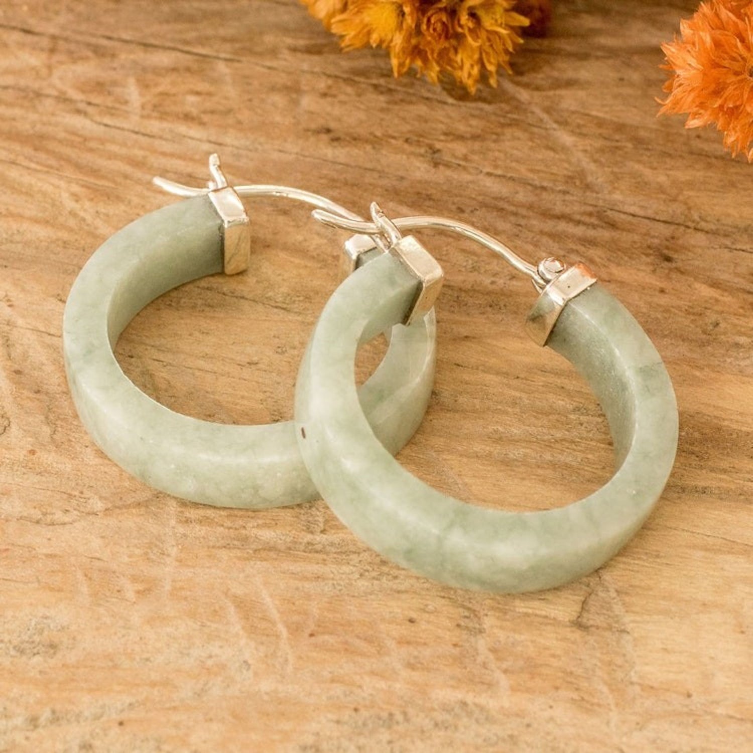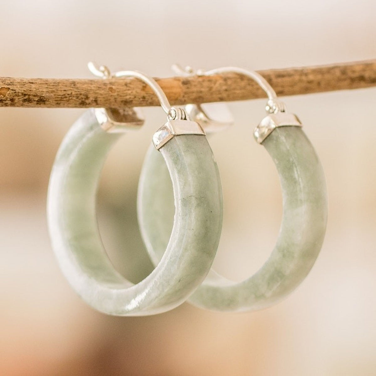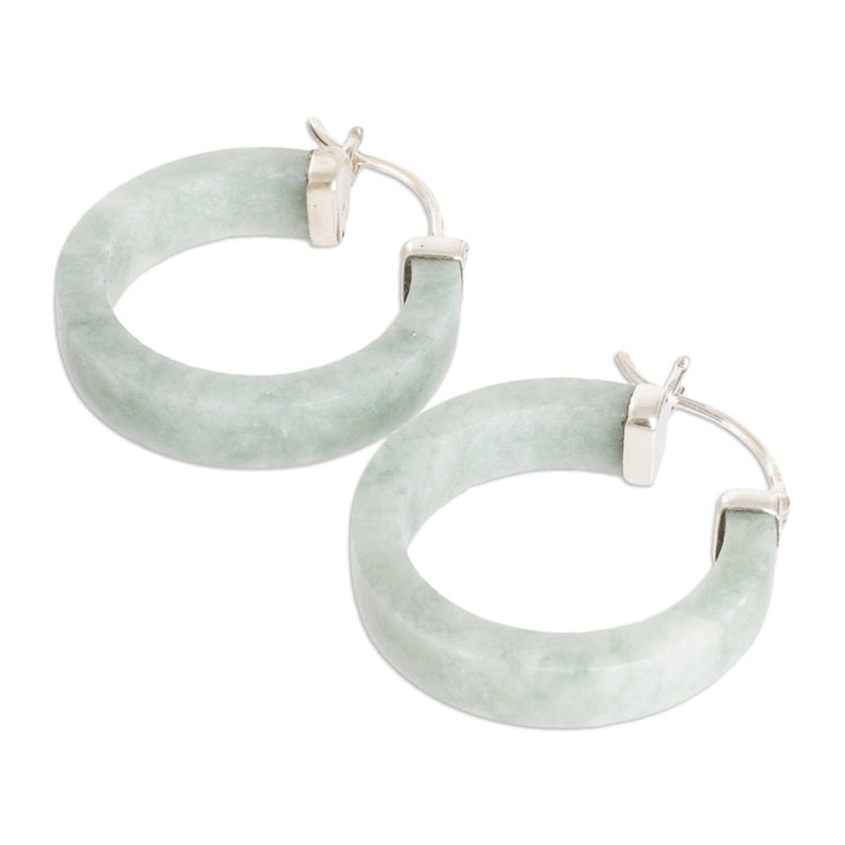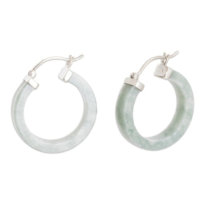 Modern Green Jade Hoop Earrings with Sterling Silver Clasps 'Lagoon Connection'