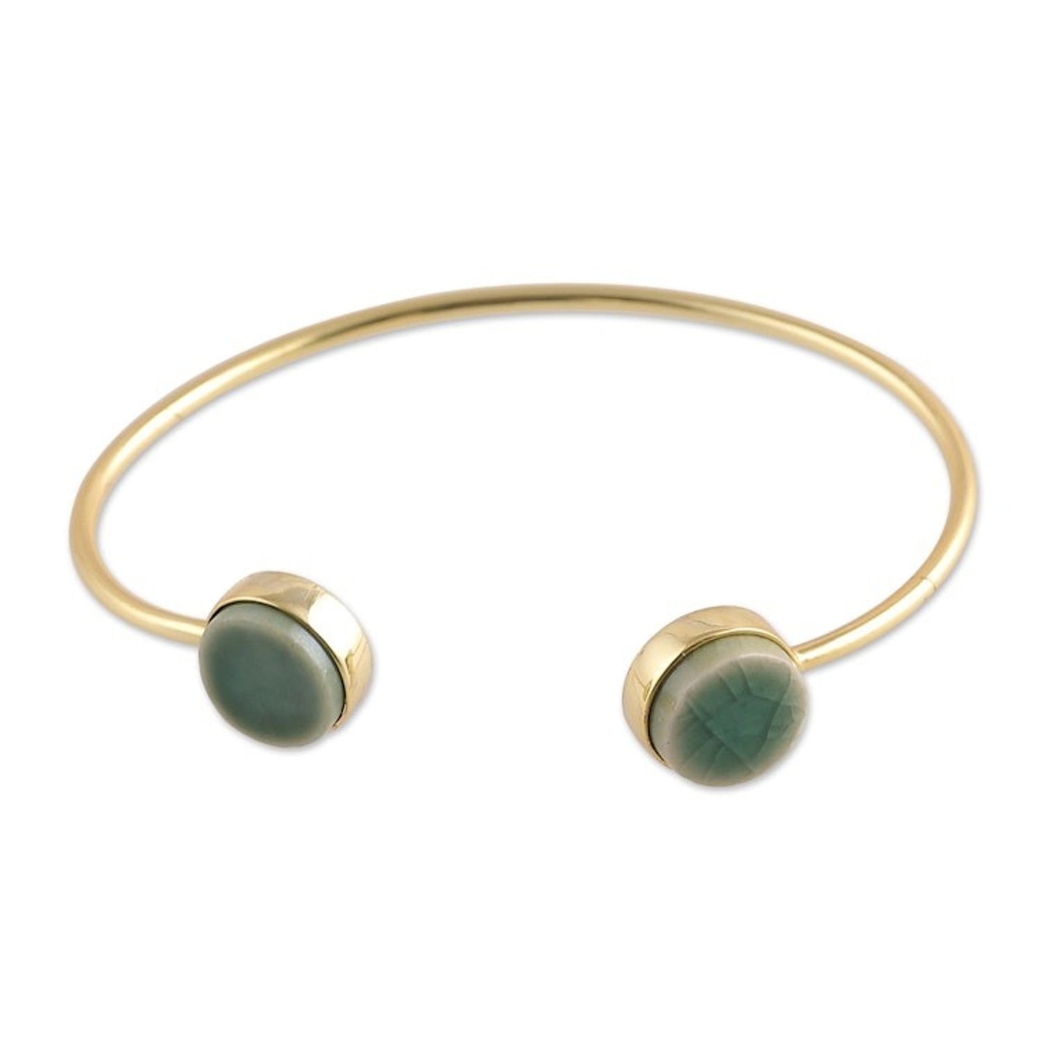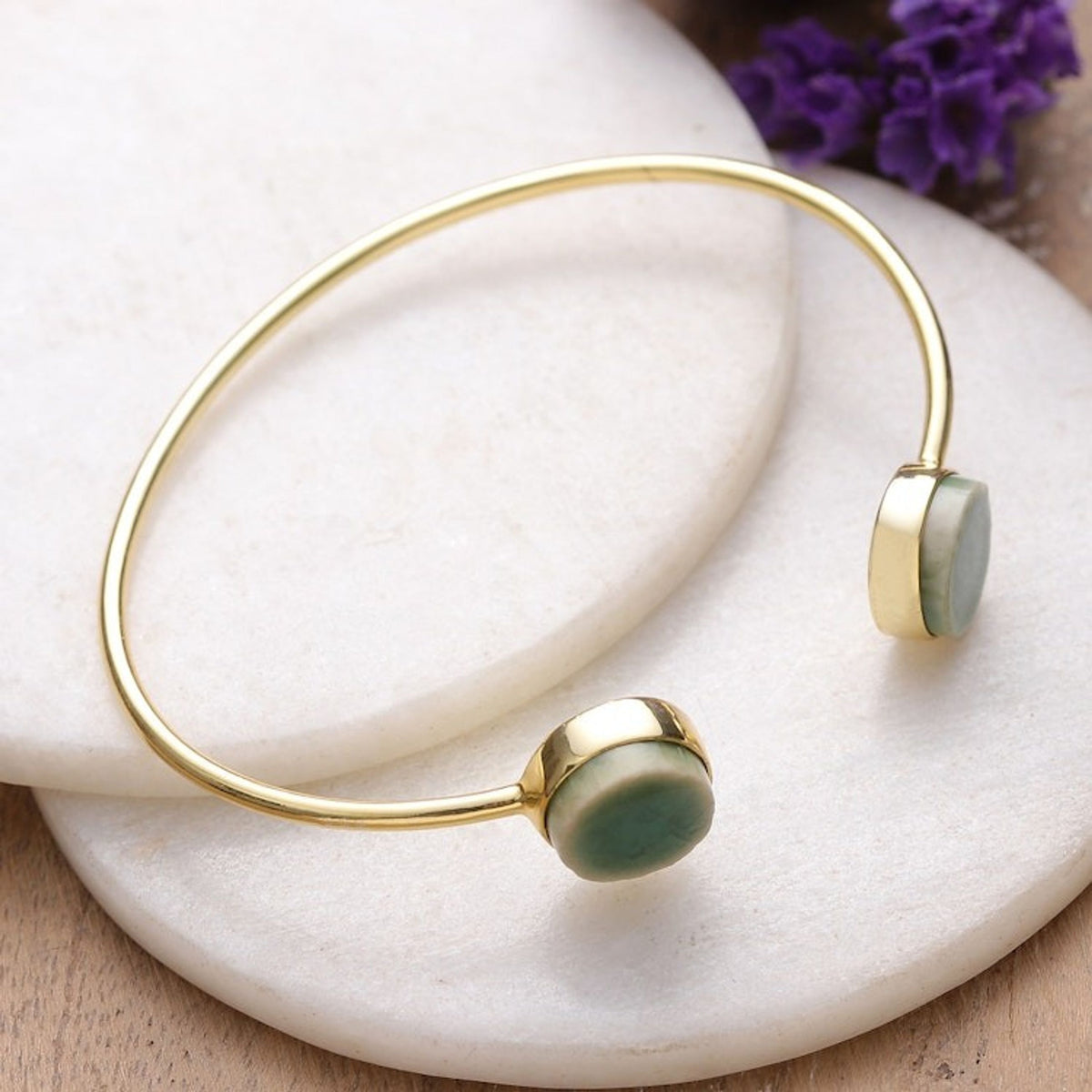 Modern Minimalist Brass and Green Ceramic Cuff Bracelet 'Green Utopia'