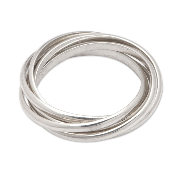 This Modern Minimalist Polished Sterling Silver Band Ring 'Radiant Hoop' is a bold and elegant accessory by Balinese artisan Nyoman Rena. The sterling silver band ring features a minimalist style that is perfect for a refined accent. Made of several hoops united in one, the piece also displays a radiant look thanks to its high-polish finish. The piece reflects Rena's ability to blend Balinese heritage with contemporary design, sharing Bali's artistry with the world.