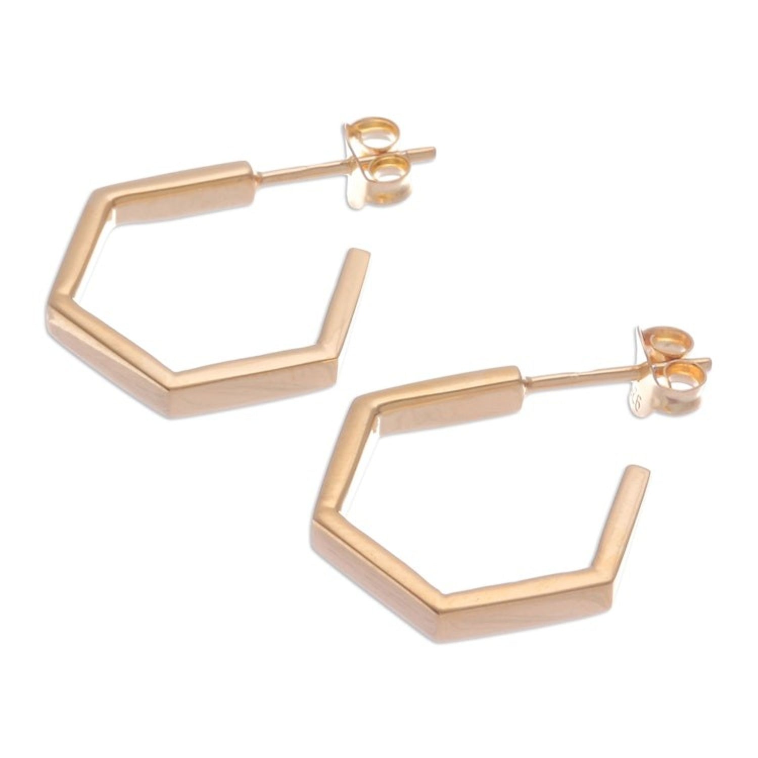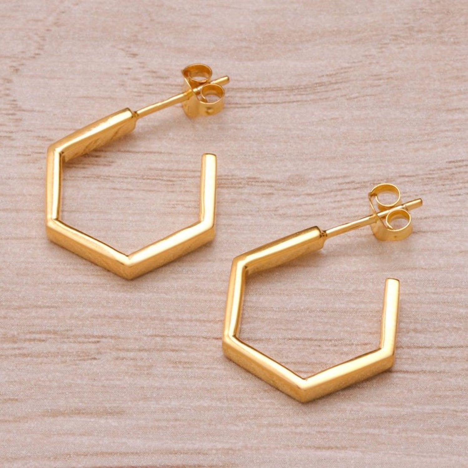 Modern Pentagon-Shaped 18k Gold-Plated Half-Hoop Earrings 'Pentagon of Glory'