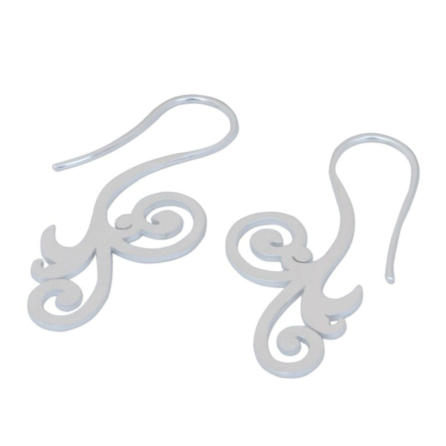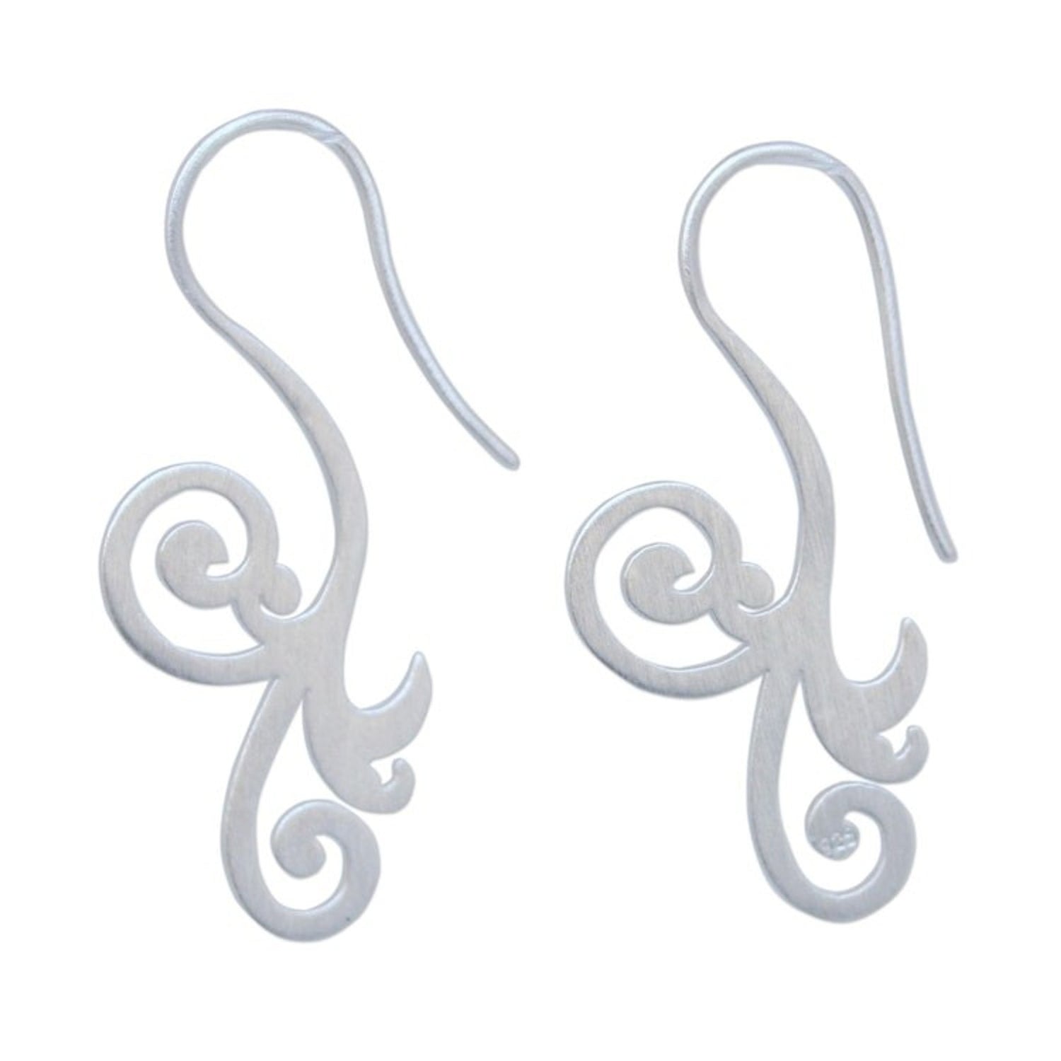 Crafted in Thailand from sterling silver, these hook earrings have a brushed-satin finish. They measure 1.4 inches long by 0.6 inches wide.