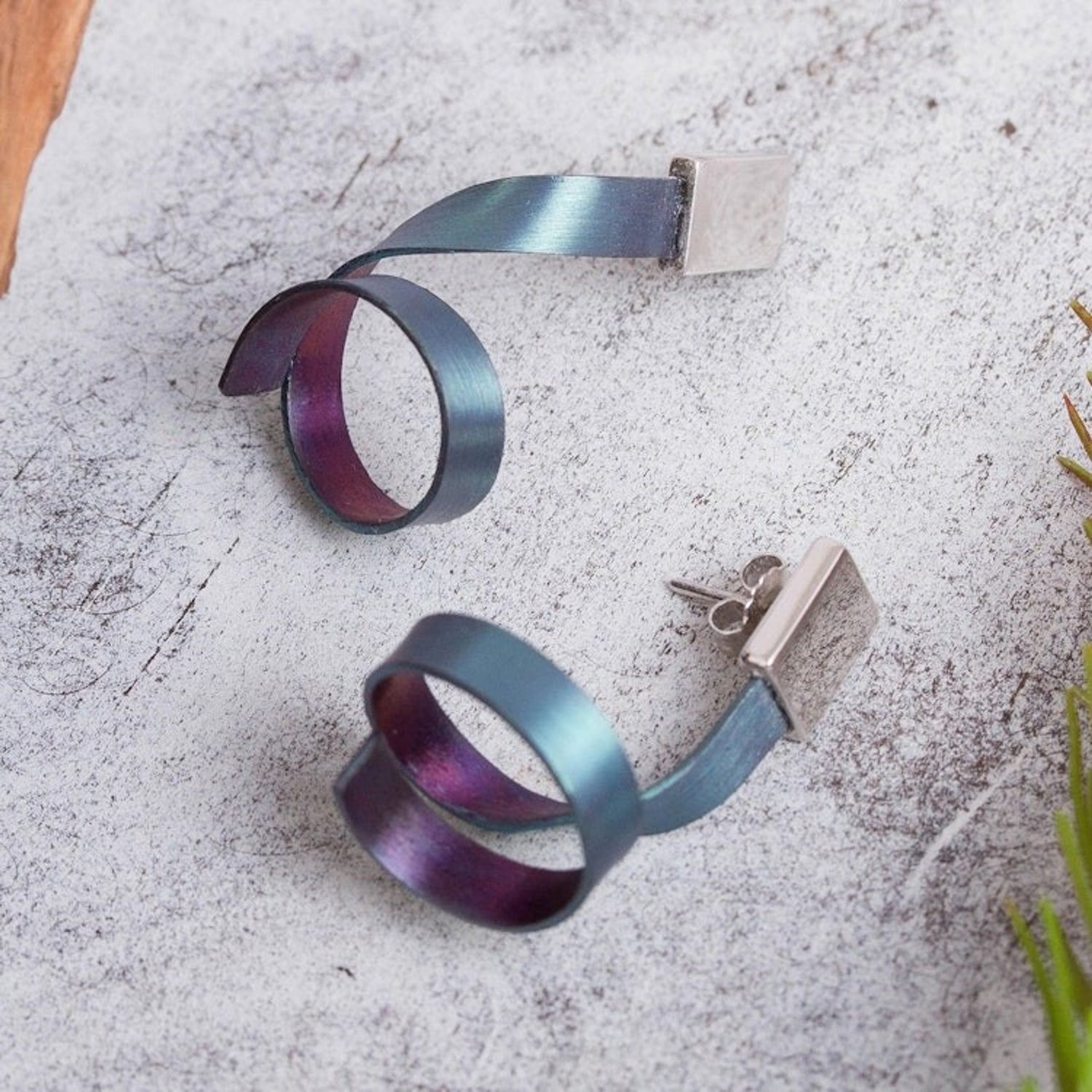 Modern Titanium Plated Sterling Silver Drop Earrings 'Modern Ribbons'