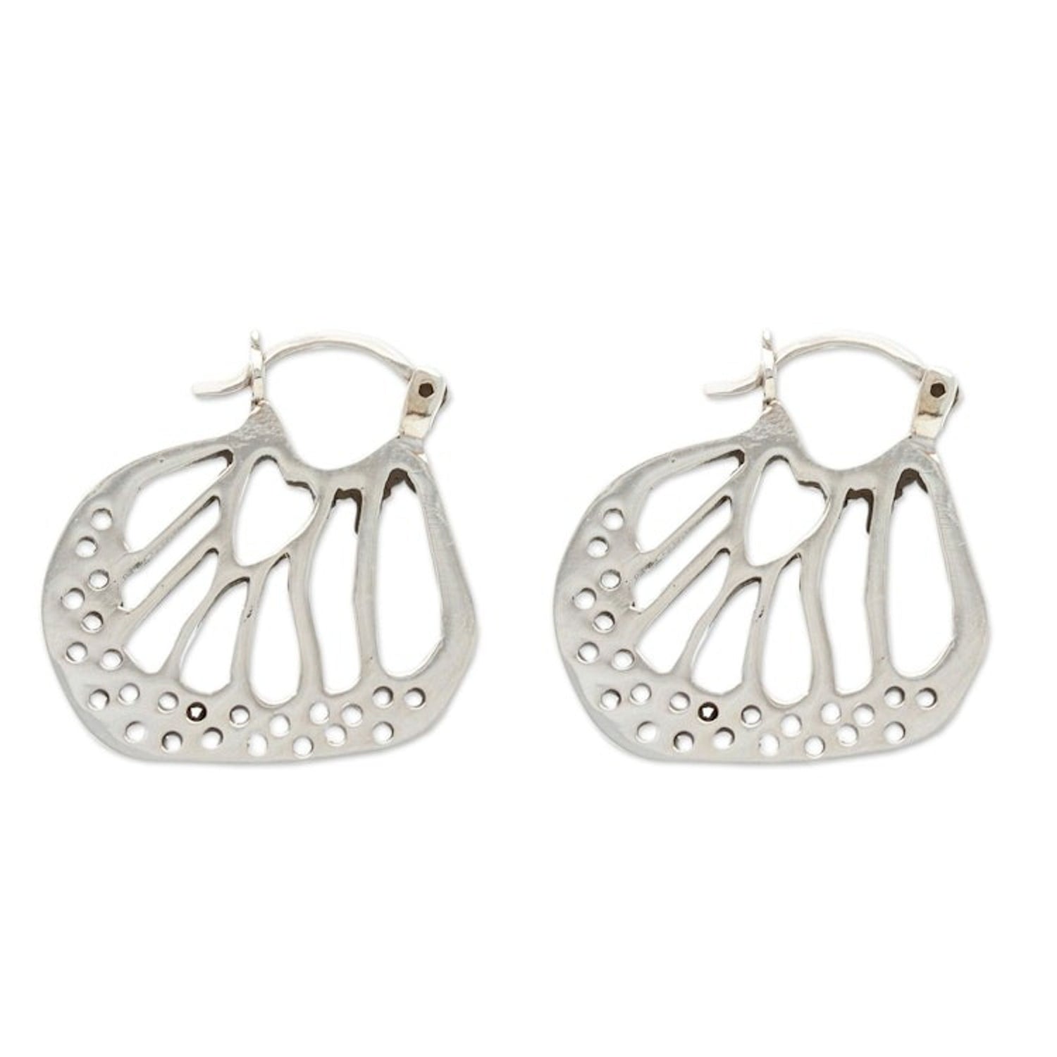 Monarch Wing Taxco Sterling Silver Hoop Earrings from Mexico 'Monarch Magic'