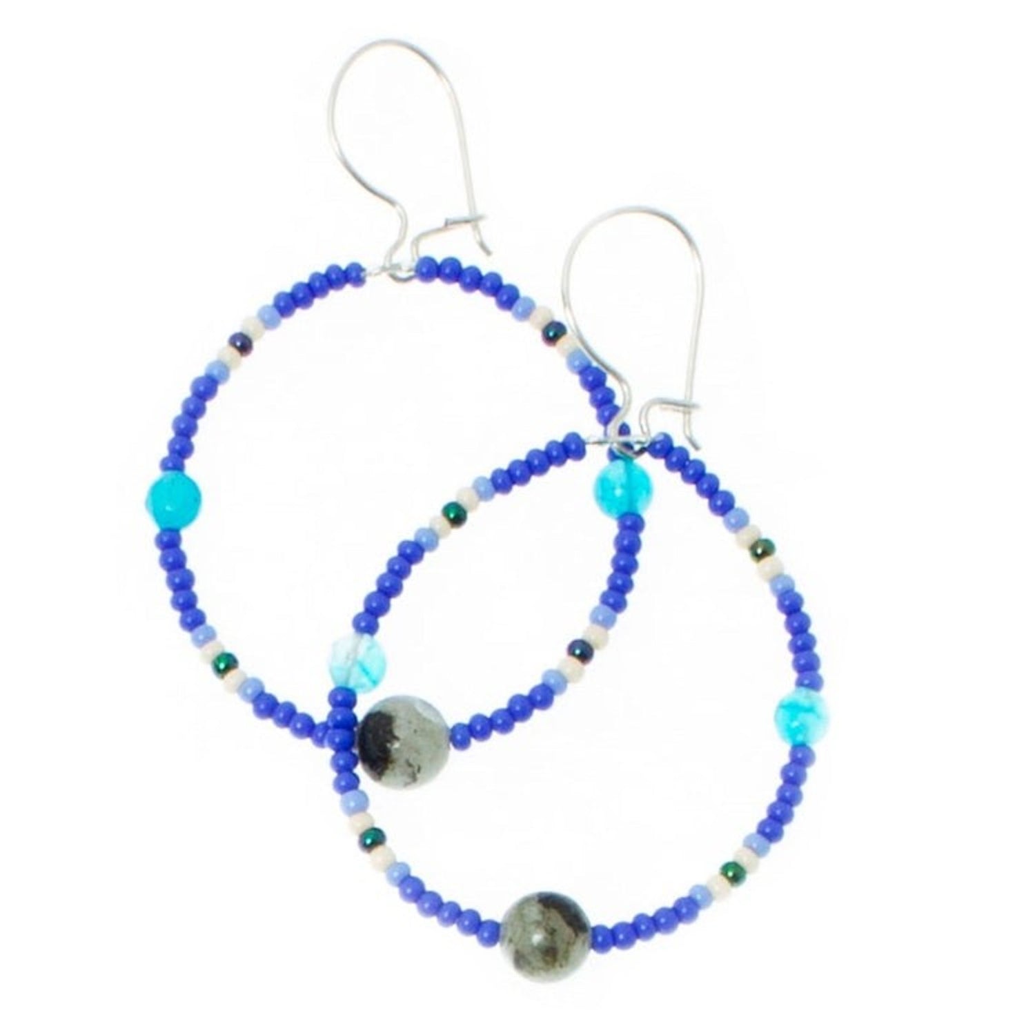 This Multi-Colored Beaded Hoop Earrings Set of 7 'Seven Days' is a unique and vibrant accessory by na Mirez. This set of seven pairs of beaded hoop earrings, one for each day of the week, are crafted with petite glass beads in different colors and are worn on sterling silver hooks. The piece reflects na Mirez's ability to blend seed beads, silver, and gemstones into vibrant, neo-impressionist designs that reflect her love of light, color, and nature.