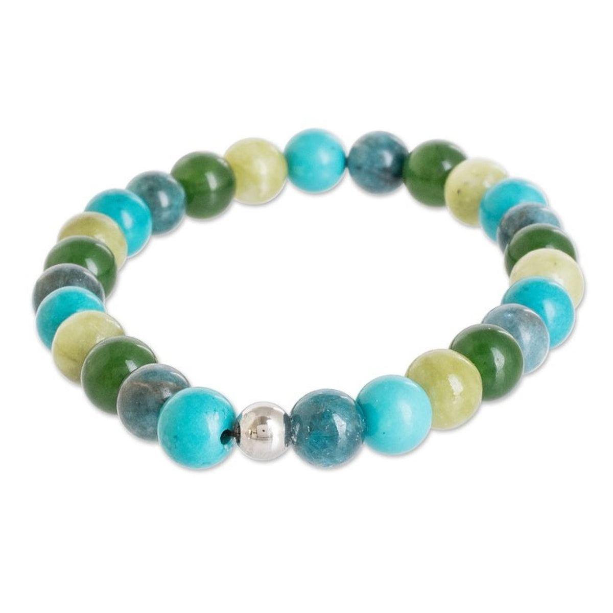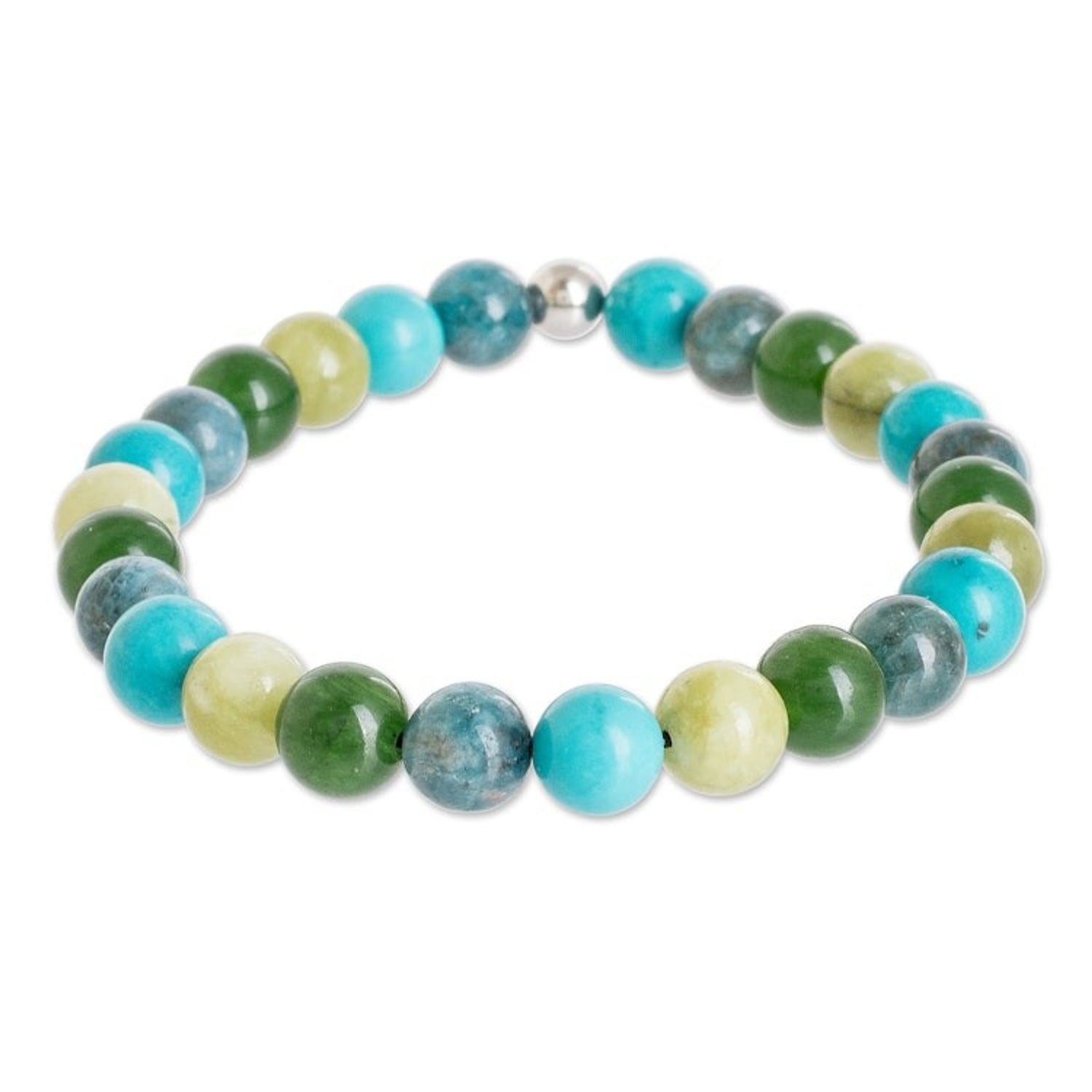 Multi-Gemstone Beaded Bracelet in Sea Forest Colors 'Energy of Bali'