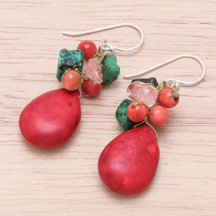 Multi-Gemstone Beaded Dangle Earrings Crafted in Thailand 'Summer Fire'