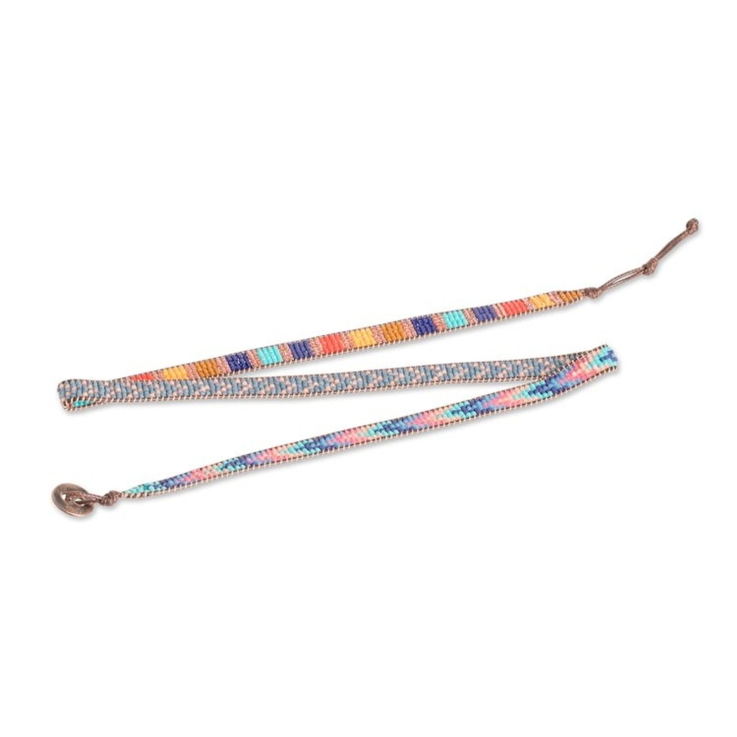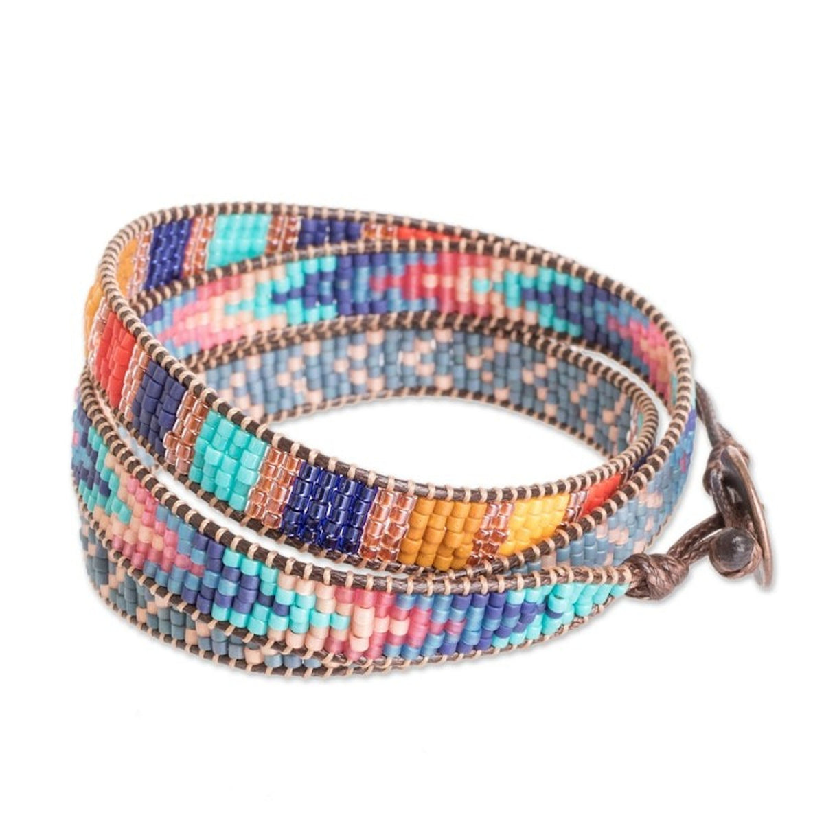 Multicolor Glass Beaded Wrap Bracelet with Geometric Motifs 'Streets of Antigua'