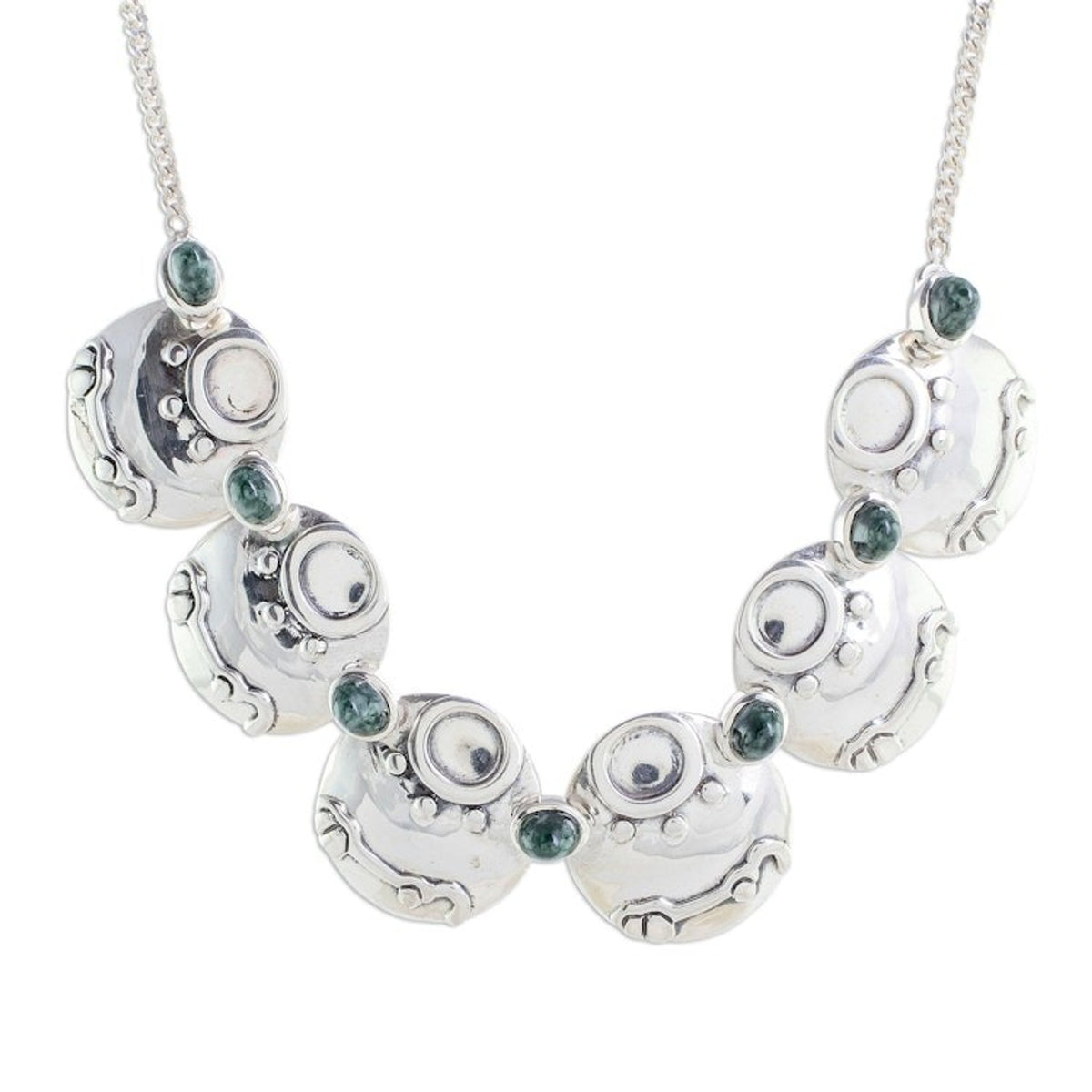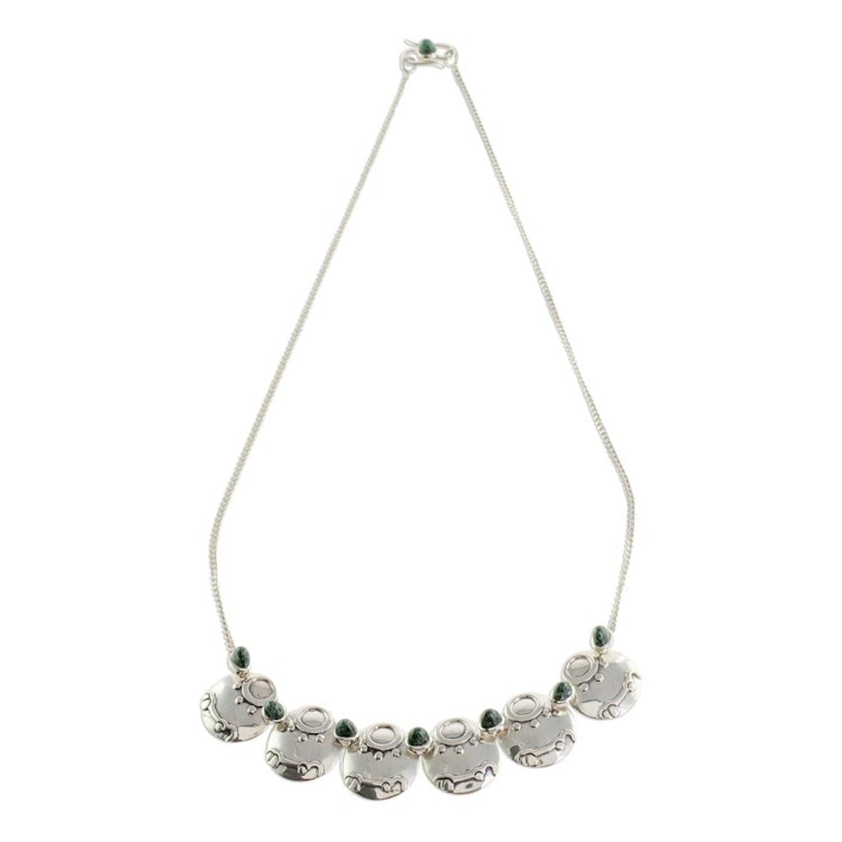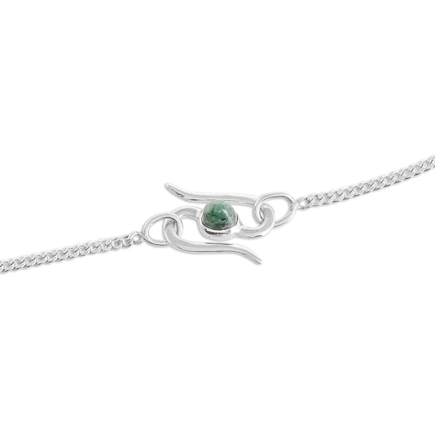 Handcrafted in Guatemala with 925 sterling silver and natural jade, this 18-inch curb link chain necklace features a 3.7-inch pendant and fastens with an S-hook clasp.