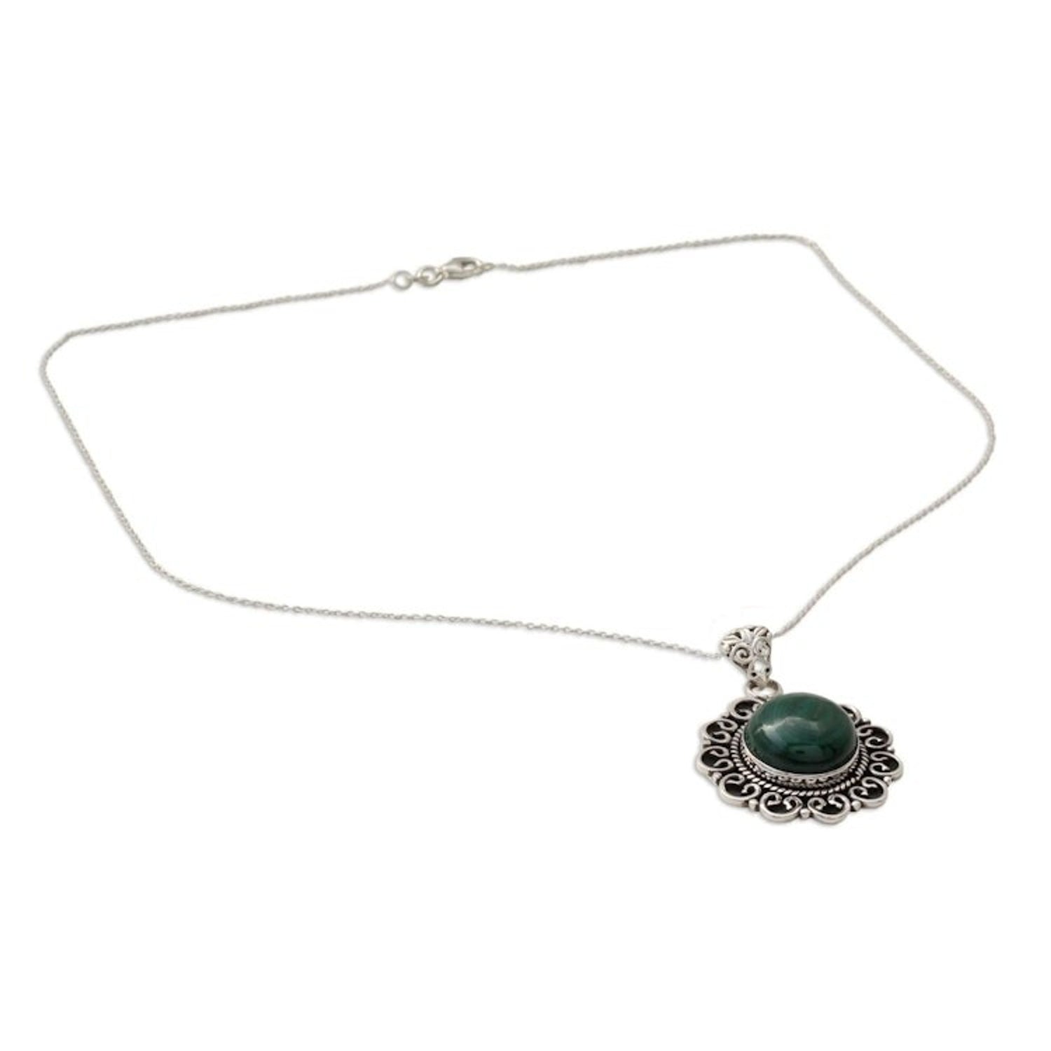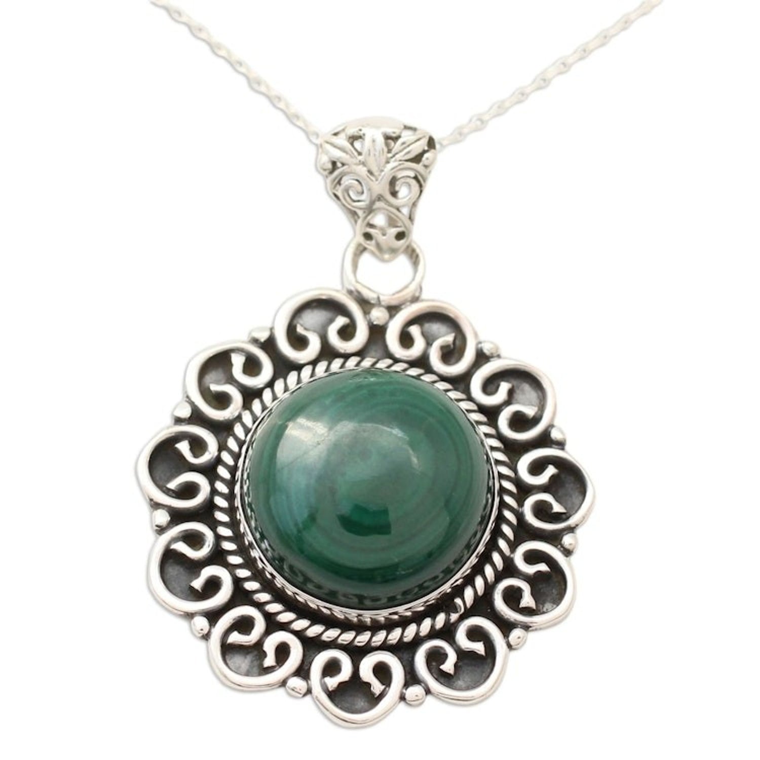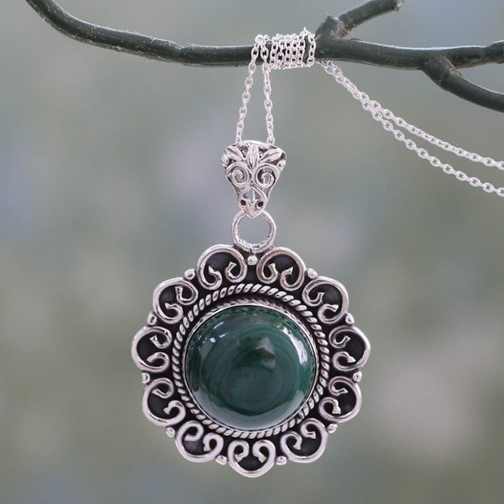 Natural Malachite Pendant Necklace in 925 Sterling SIlver 'Forest Reverie'