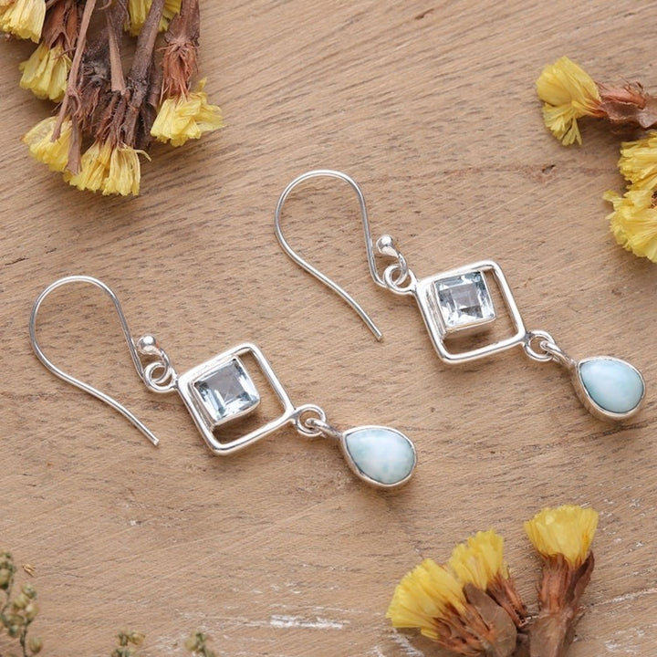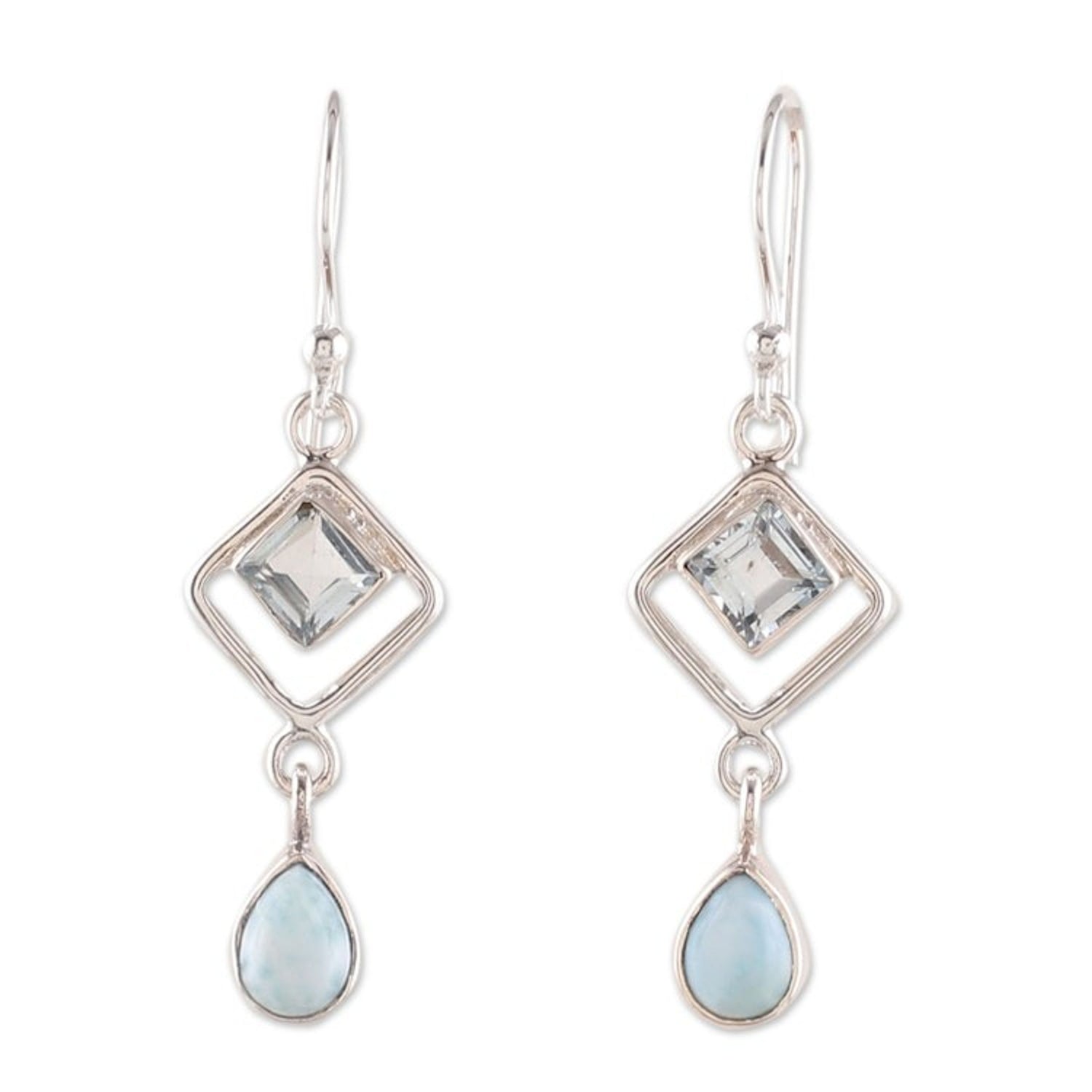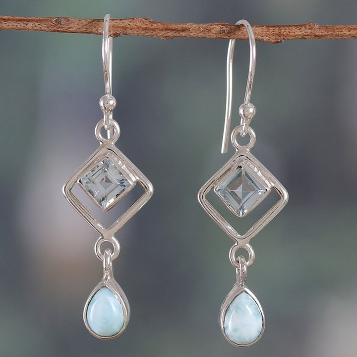 One-Carat Faceted Larimar and Blue Topaz Dangle Earrings 'Duchess' Loyalty'