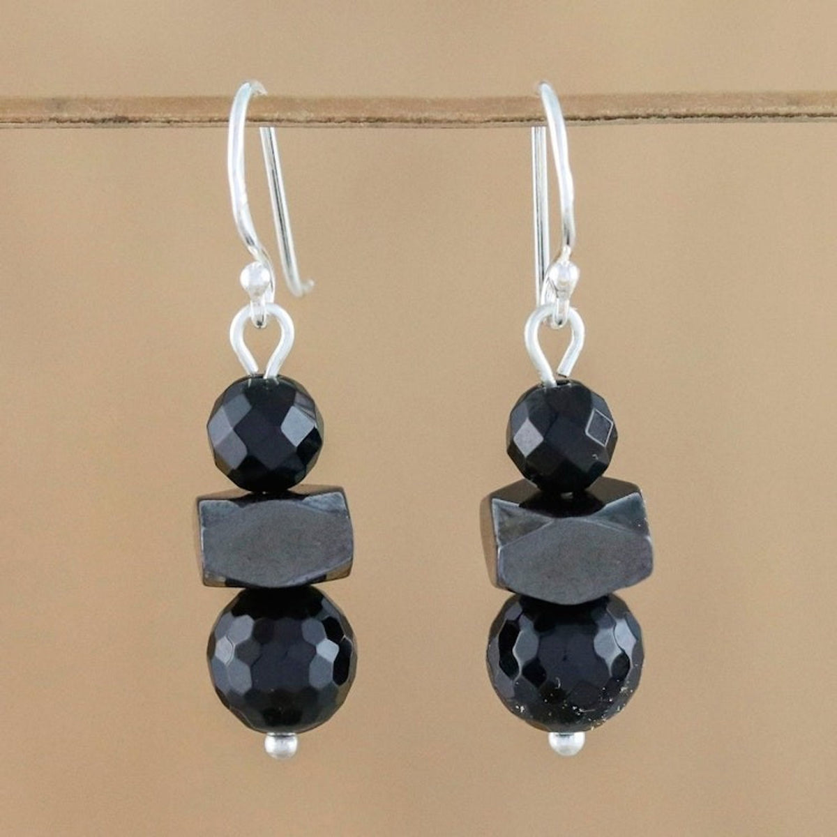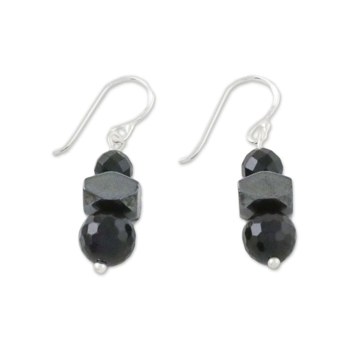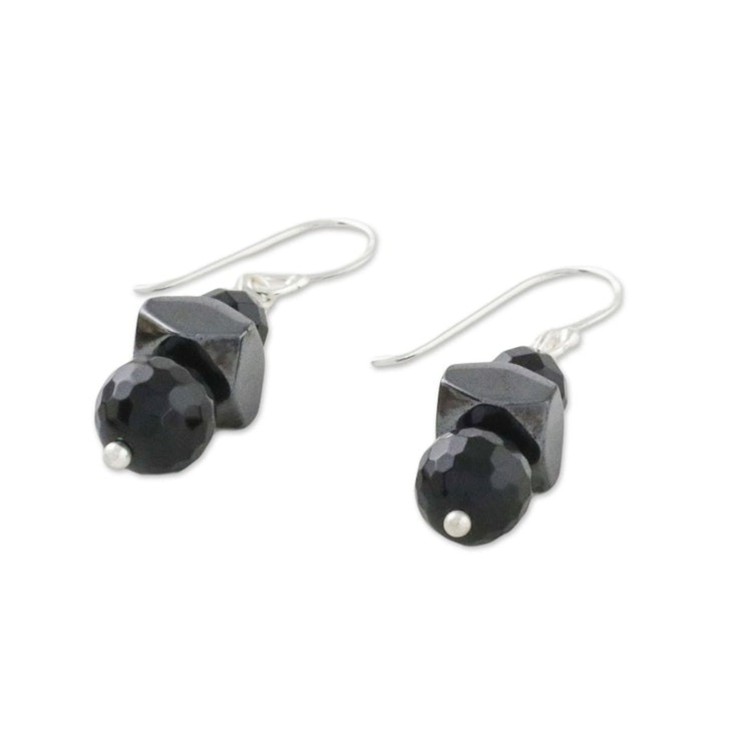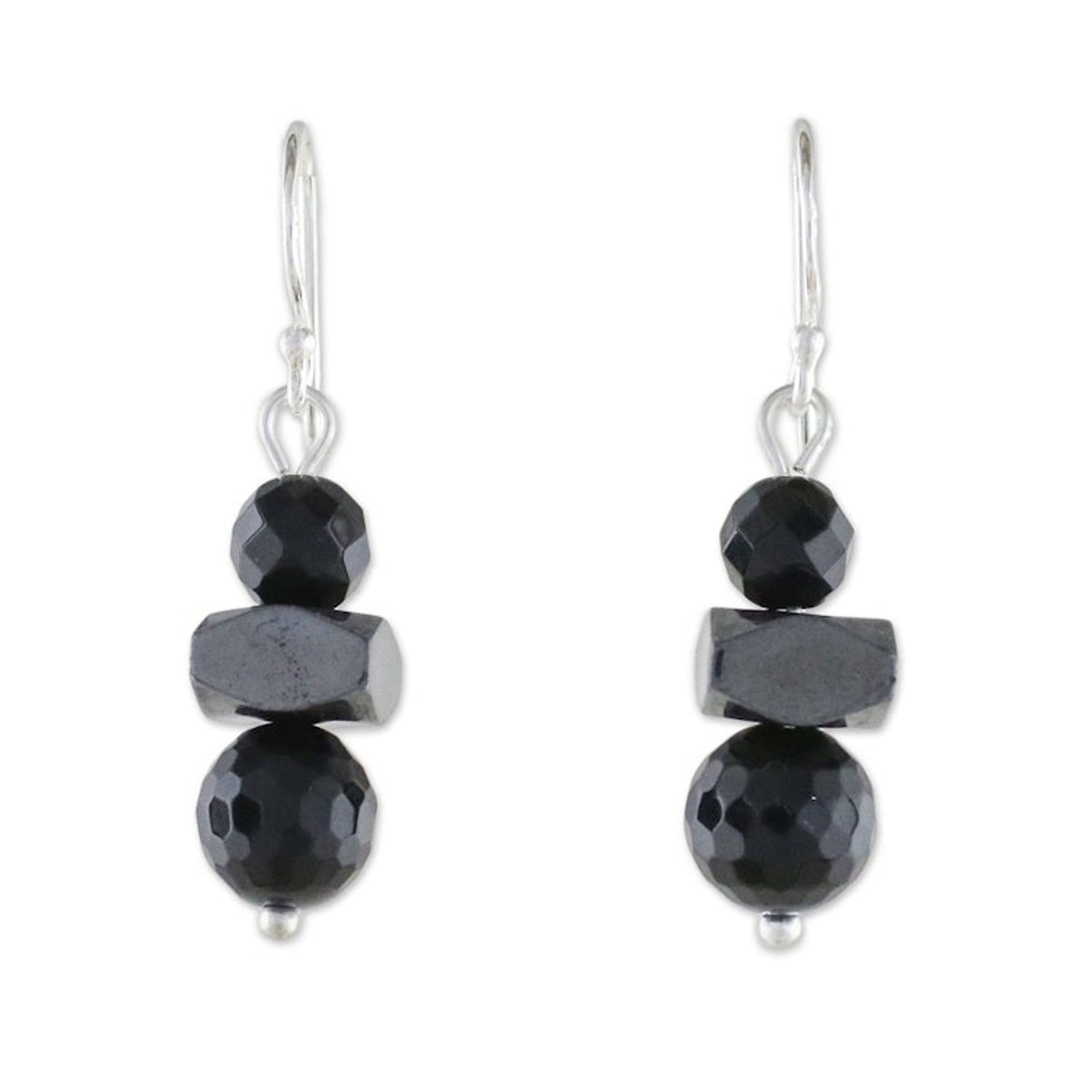 Onyx and Hematite Dangle Earrings from Thailand 'Style by Night'
