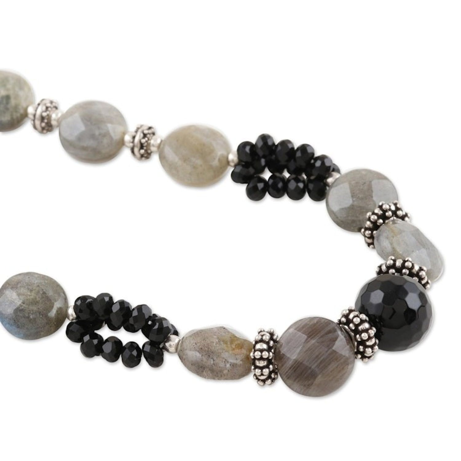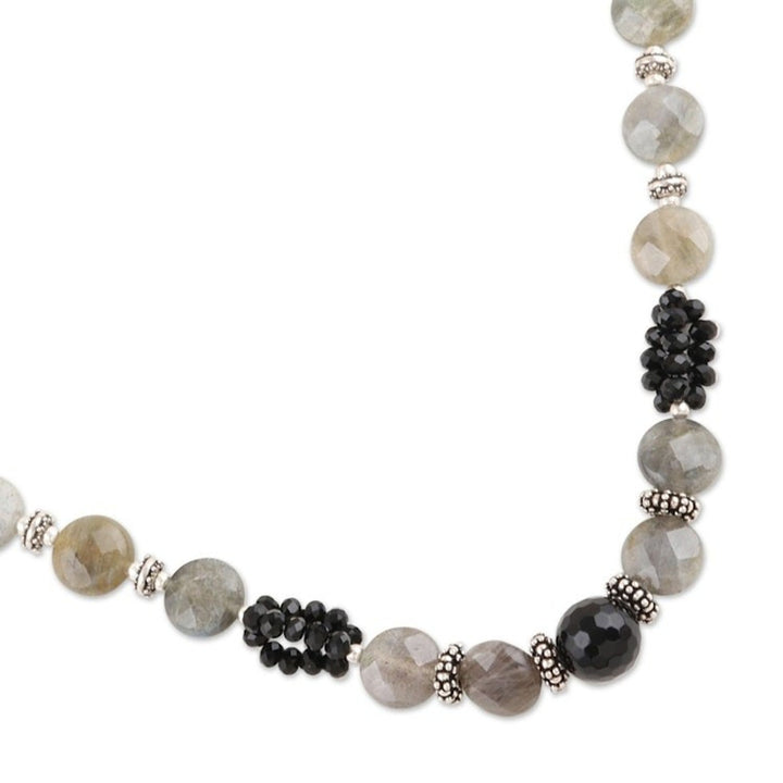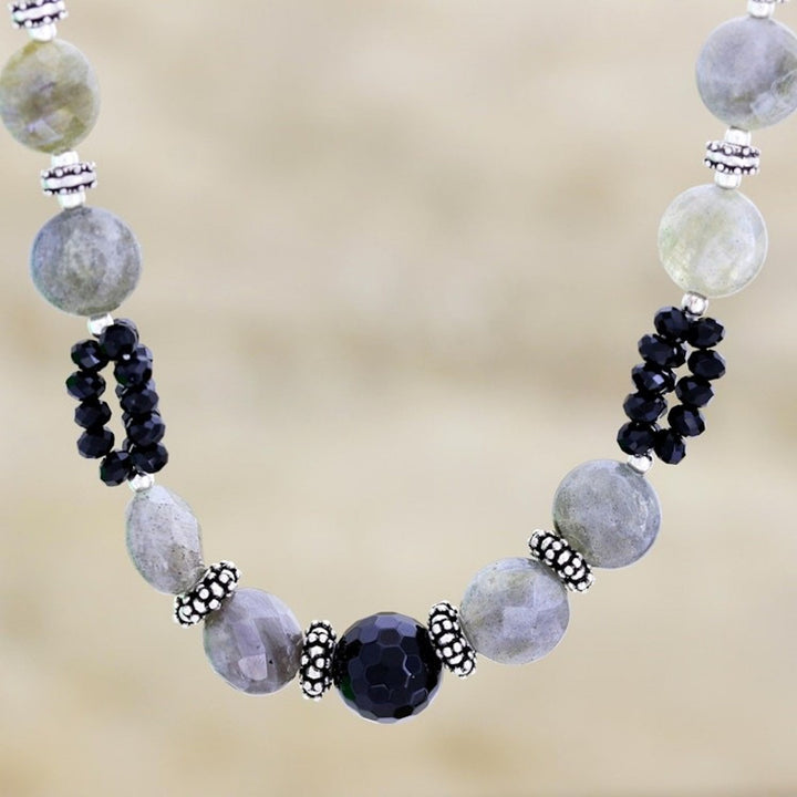 Onyx and labradorite beaded necklace 'Mysterious Moonlight'