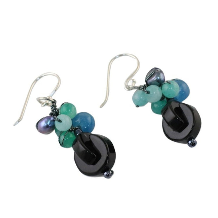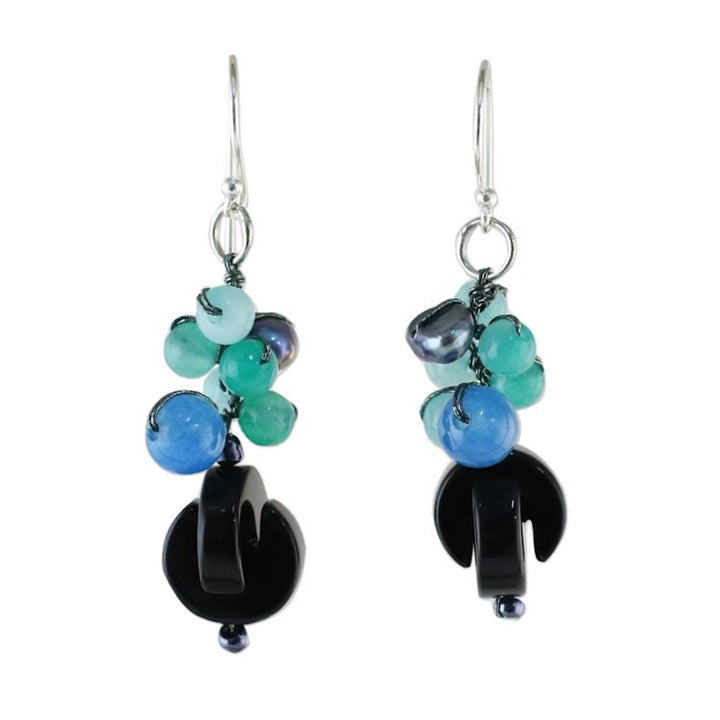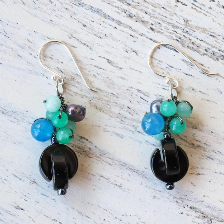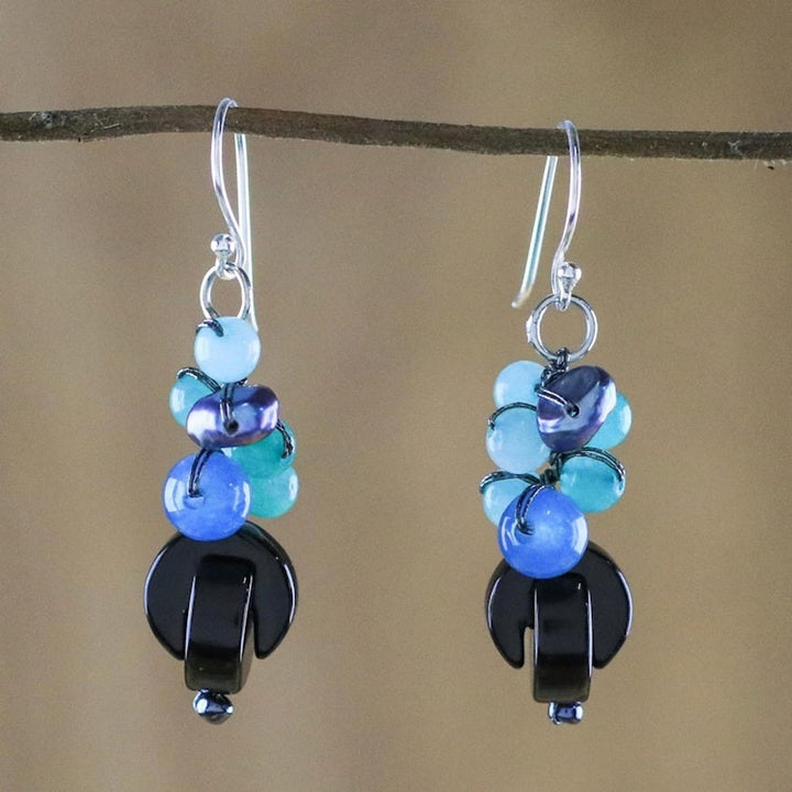 Onyx Multi-Gemstone Dangle Earrings from Thailand 'Tidal Wave in Blue'