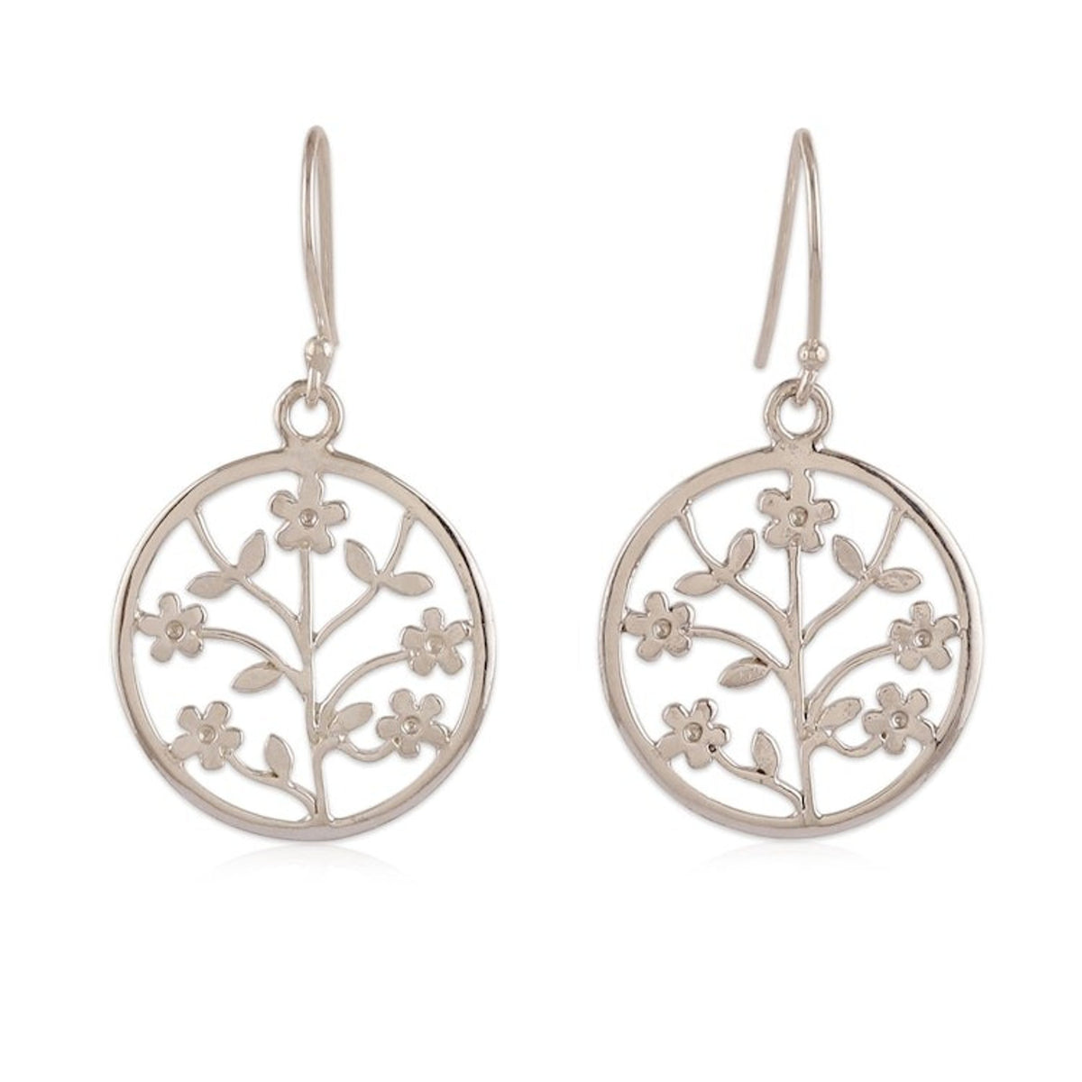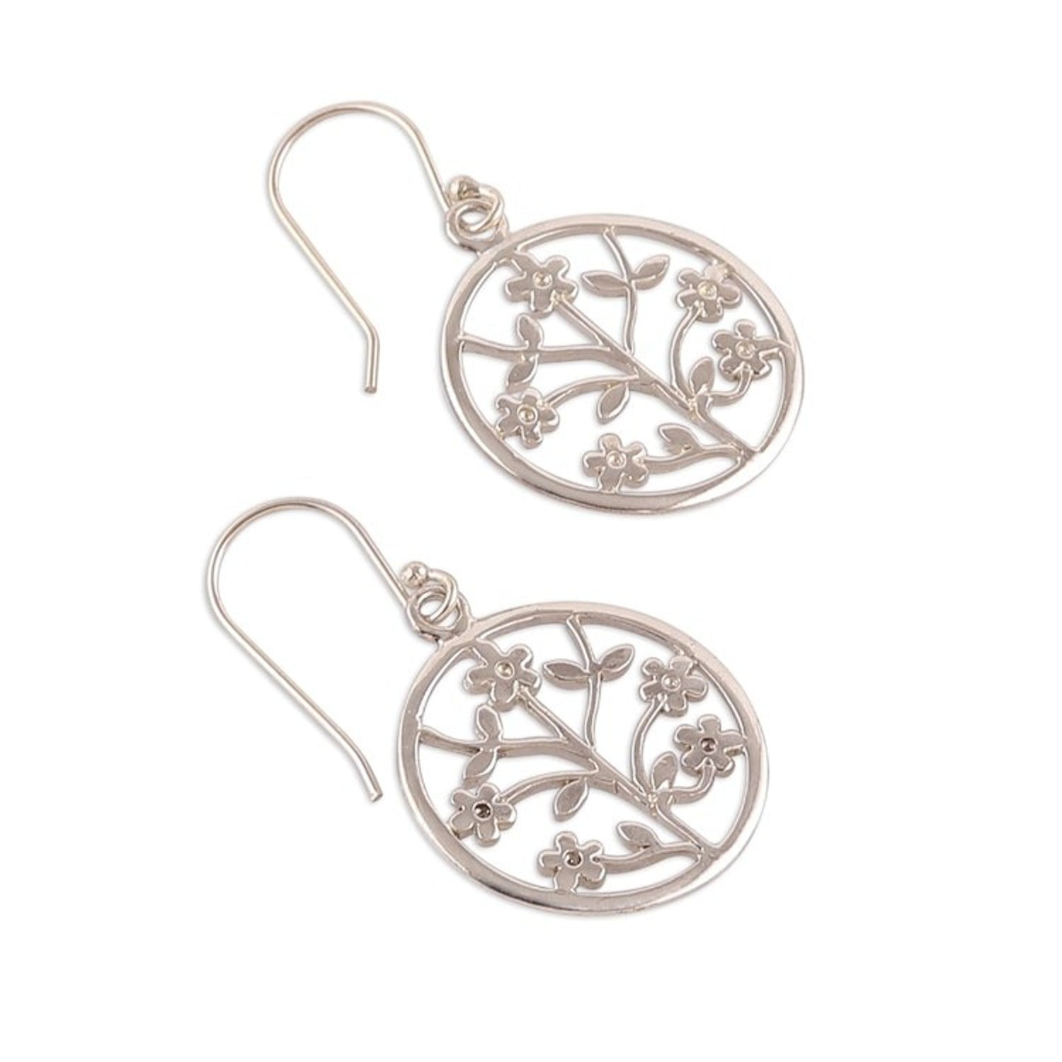 Openwork Silver Dangle Earrings with Floral and Leaf Motifs 'Floral Openwork'