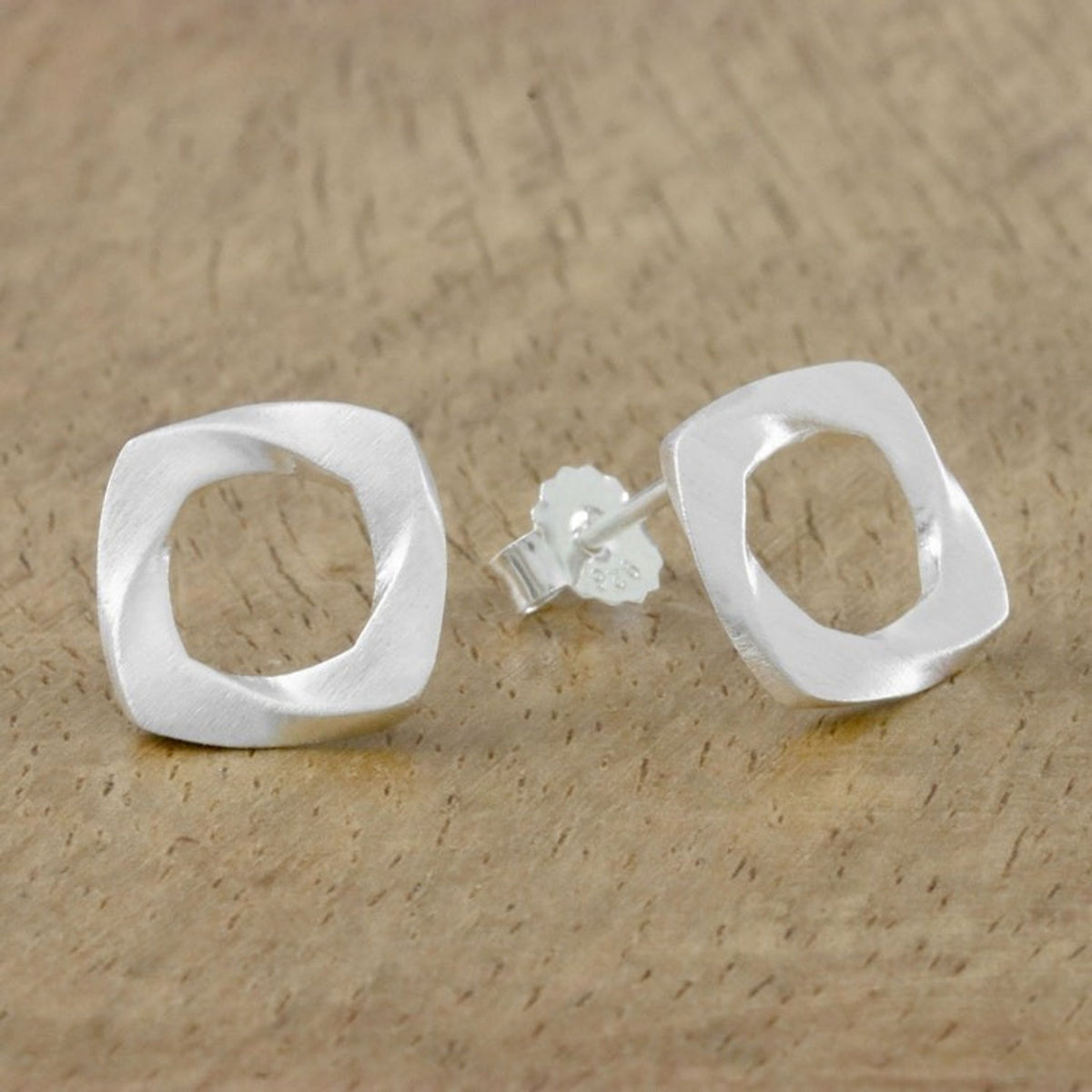 Openwork Sterling Silver Square Drop Earrings from Thailand 'Square Twist'