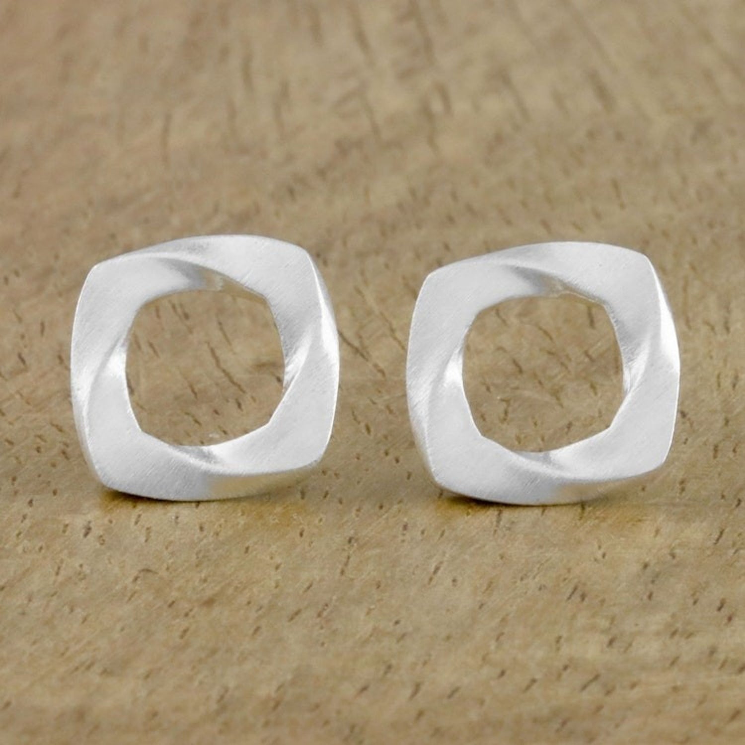 This Openwork Sterling Silver Square Drop Earrings from Thailand 'Square Twist' is a stylish and unique accessory. Designed by Sarote Lochotinunt, these sterling silver drop earrings feature square shapes with lovely openwork and twisting patterns, accented with a brushed-satin finish. The piece embodies innovation and artistry, and is a beautiful representation of the artisan's commitment to bringing joy to those who wear his jewelry.