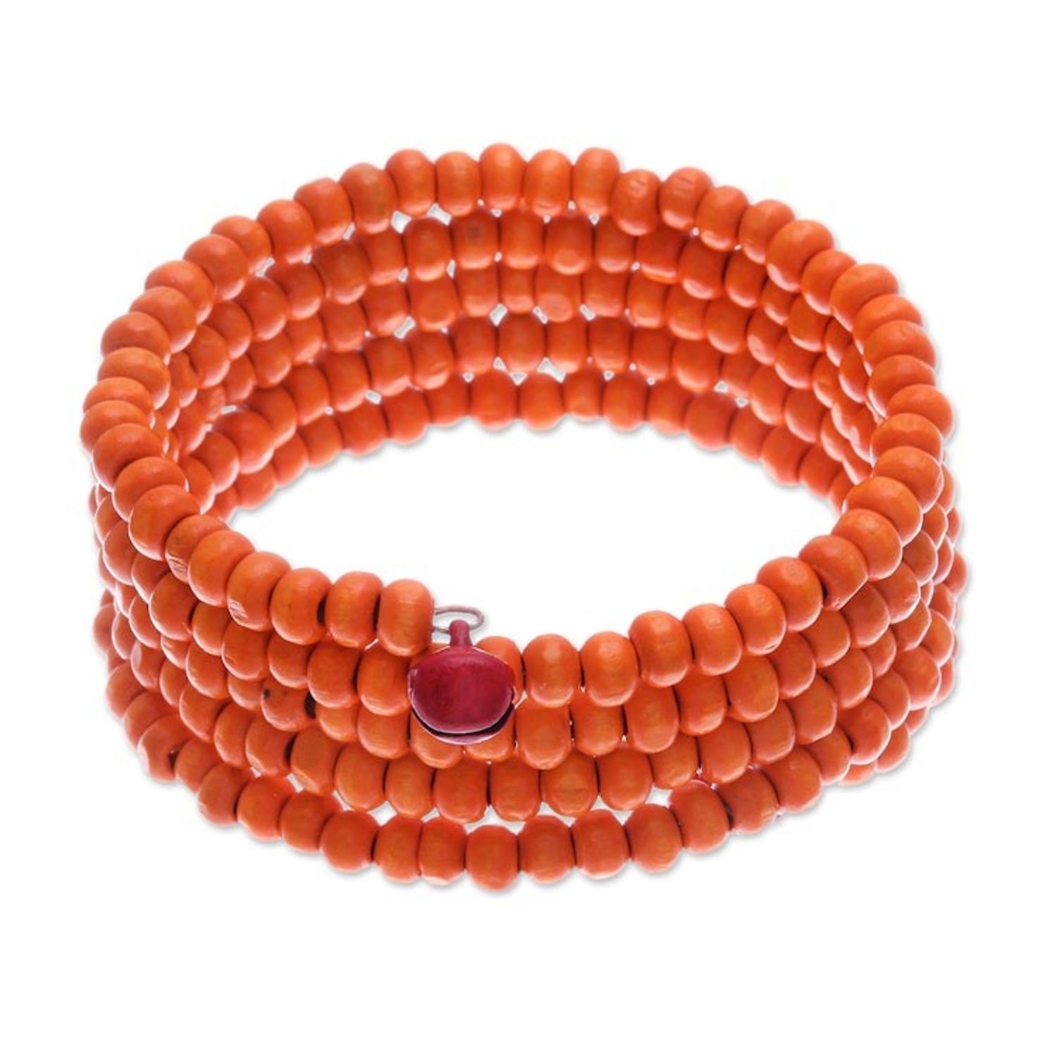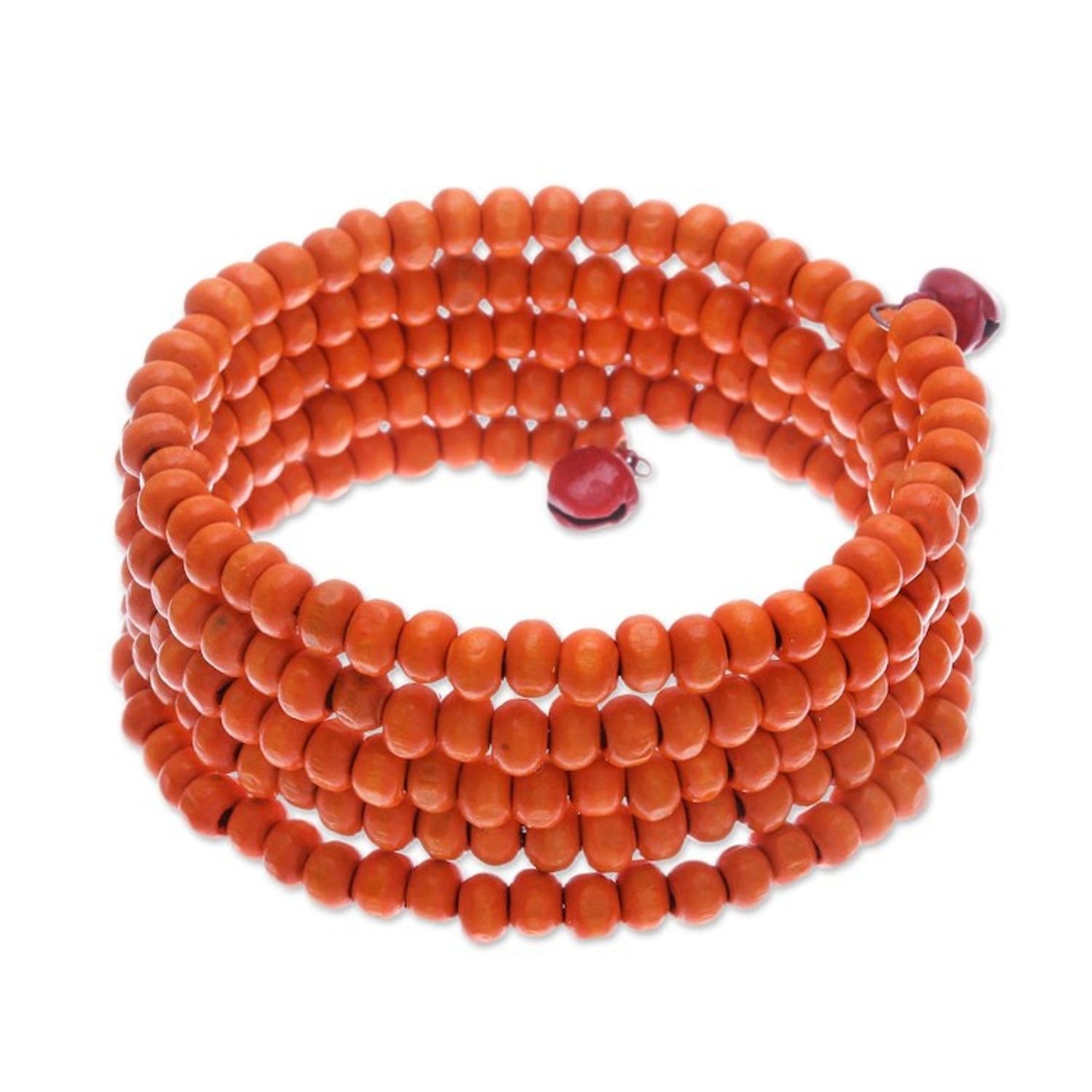 Orange Beaded Wood Wrap Bracelet with Bells 1 In 'Tangerine Spin'