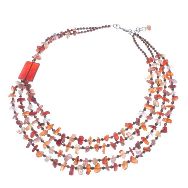 Orange Carnelian and Chalcedony Strand Necklace 'Window to Courage'