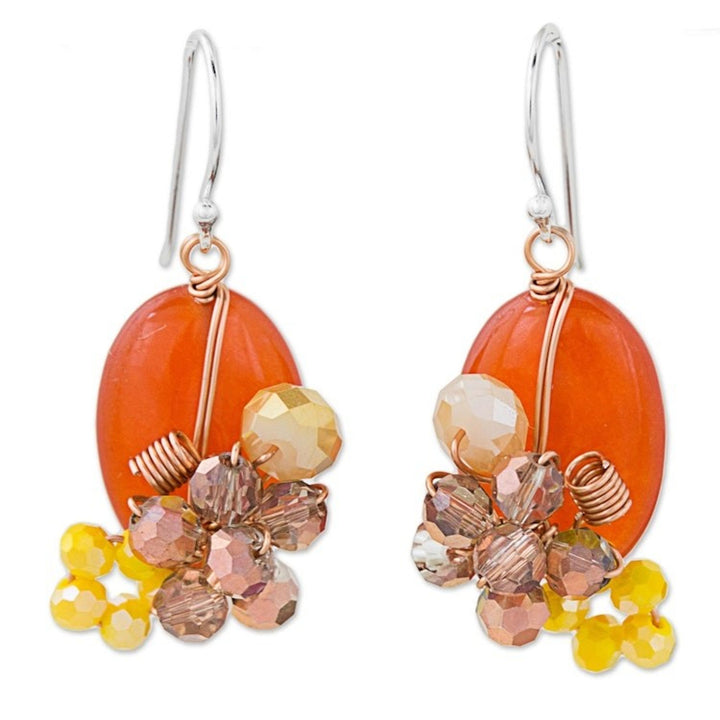 Orange Quartz and Glass Bead Dangle Earrings with Copper 'Garden Bliss in Deep Orange'
