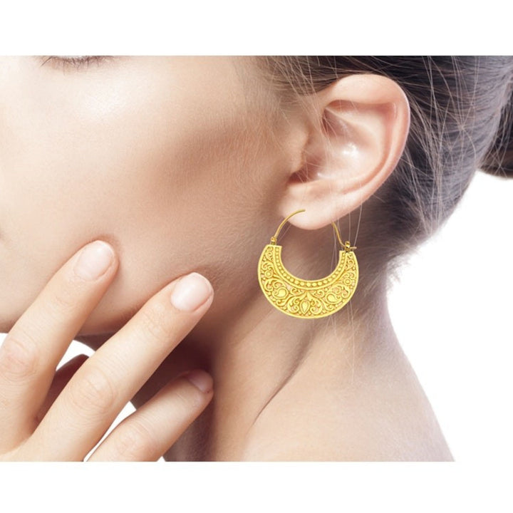 Ornate 22k Gold Vermeil Hoop Earrings from Indonesia 'Garden of Eden'