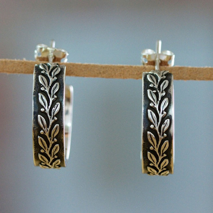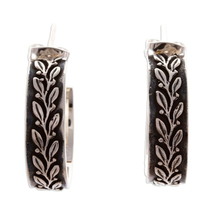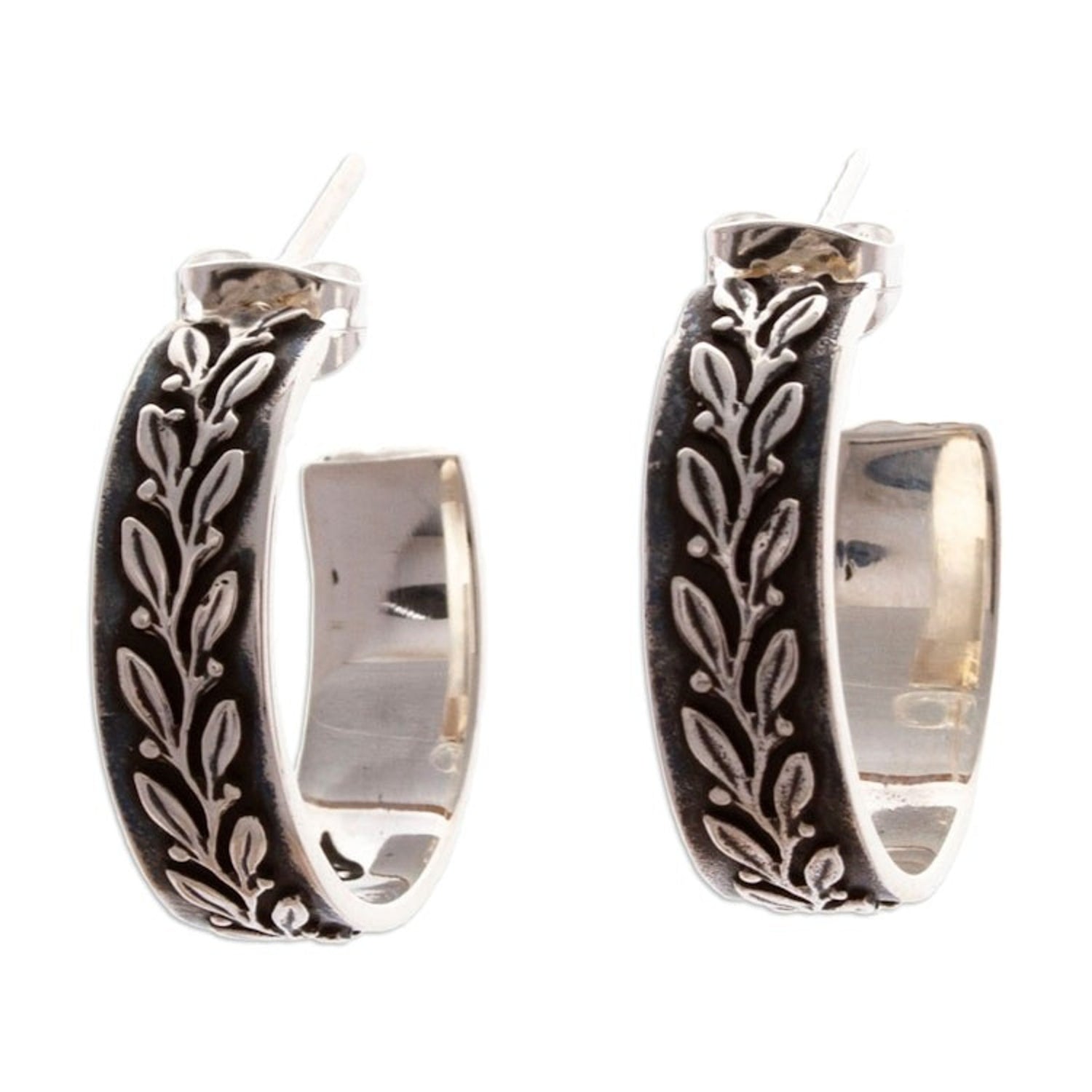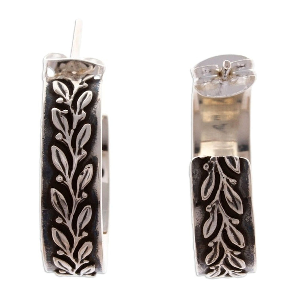 Oxidized Leafy Embossed Taxco Silver Half-Hoop Earrings 'Ode to Nature'