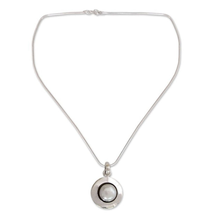 Pearl Jewelry Necklace from India 'Jaipur Magic Moon' This 'Jaipur Magic Moon' necklace by Independent Artisans is a stunning piece from Indian designer Shanker that showcases the iridescent majesty of a white pearl. The luminous pearl, said to symbolize purity and spiritual transformation, glows majestically within a highly polished sterling silver aura, reminiscent of a full moon. This necklace is a testament to the artist's commitment to originality and quality, reflecting a love for the craft and a deep understanding of the symbolic power of gemstones.