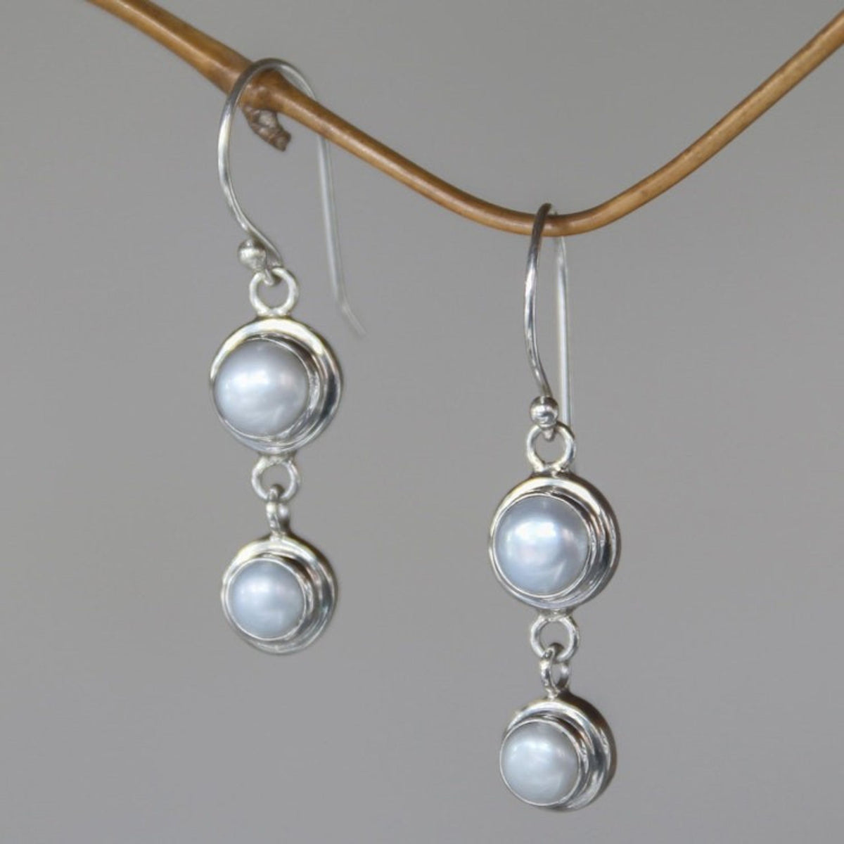 Pearl Sterling Silver Dangle Earrings 'Two Full Moons'