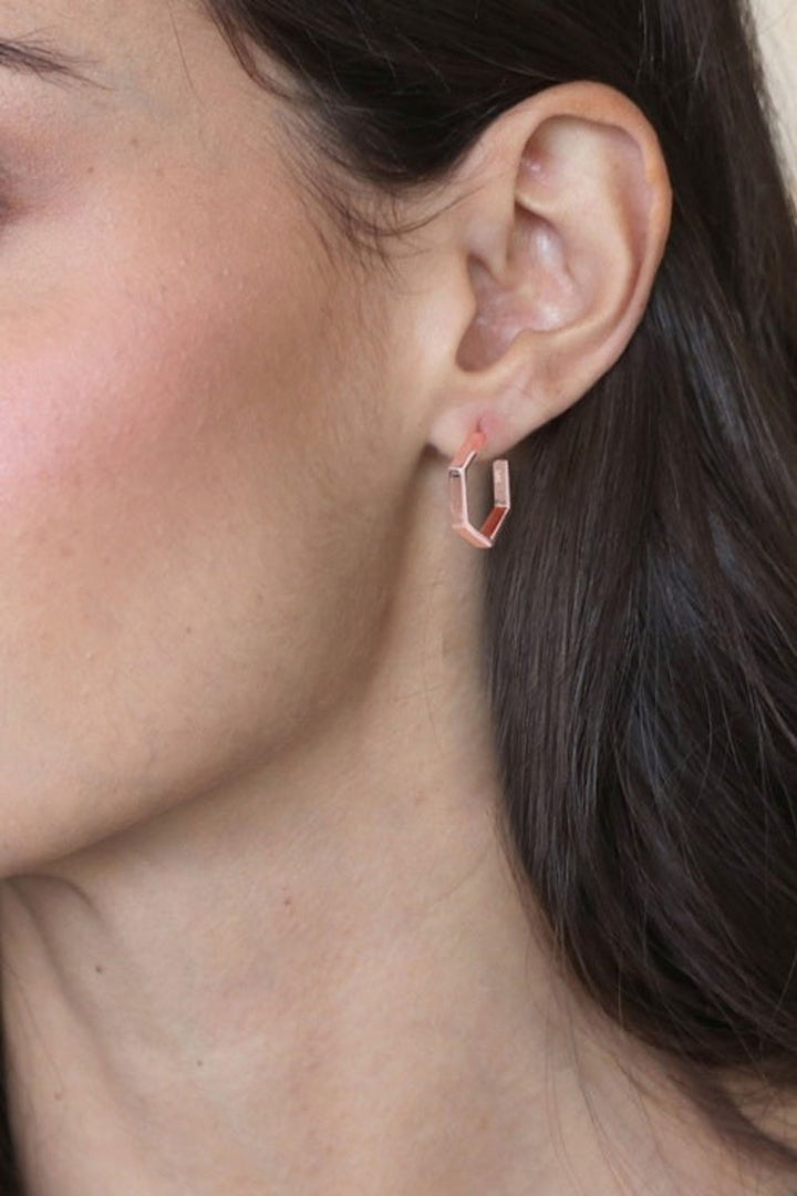 Pentagon-Shaped 18k Rose Gold-Plated Half-Hoop Earrings 'Pentagon of Grace'